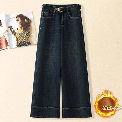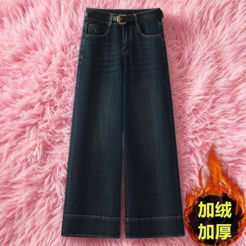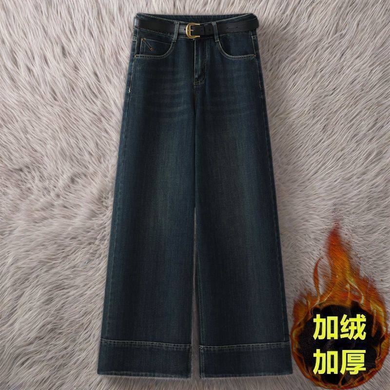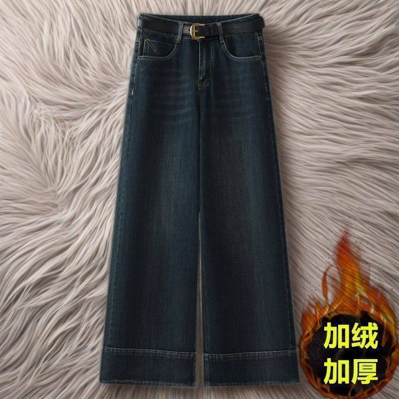 宽松阔腿裤 加绒加厚小个子推荐 子 女秋冬新款 广州十三行高端牛仔裤