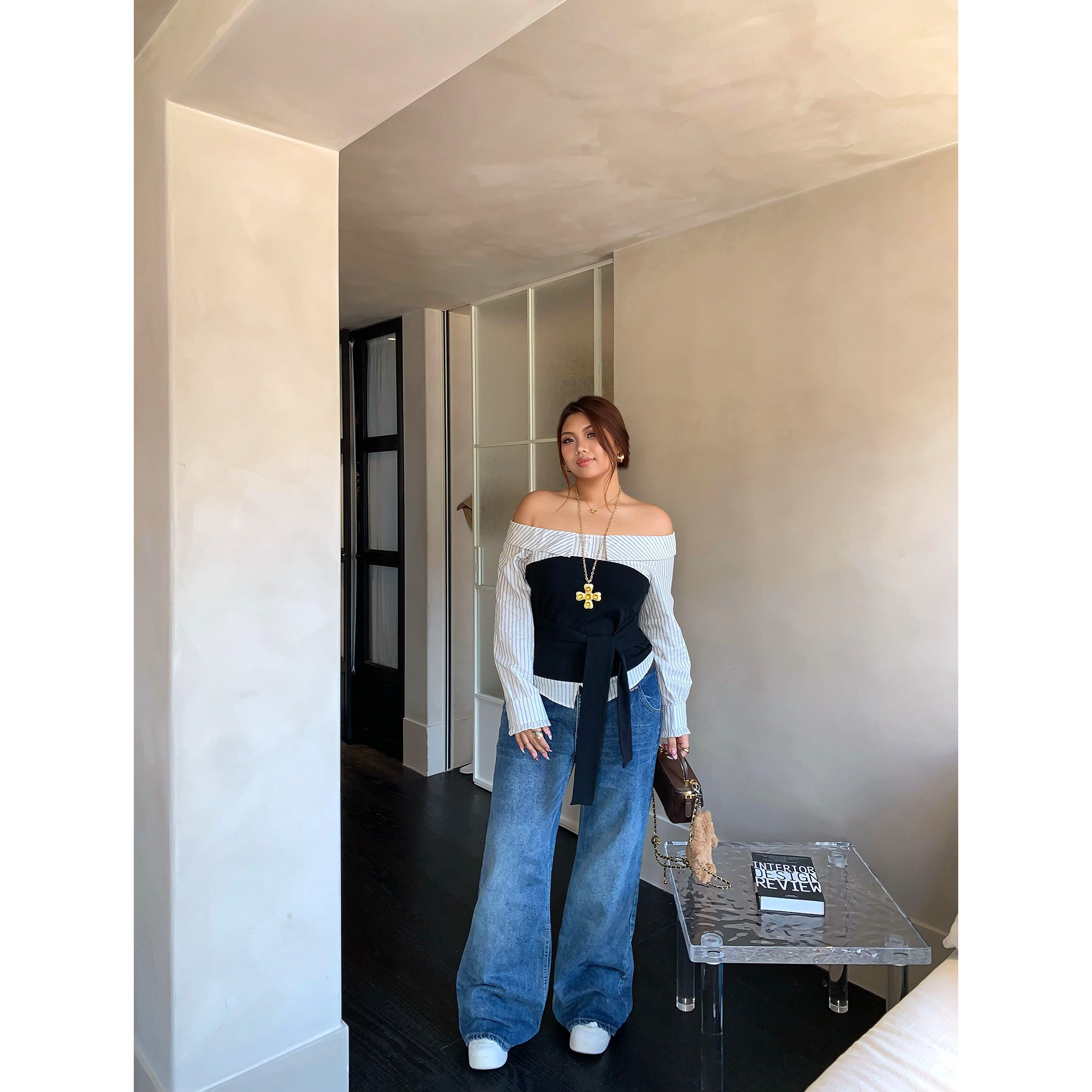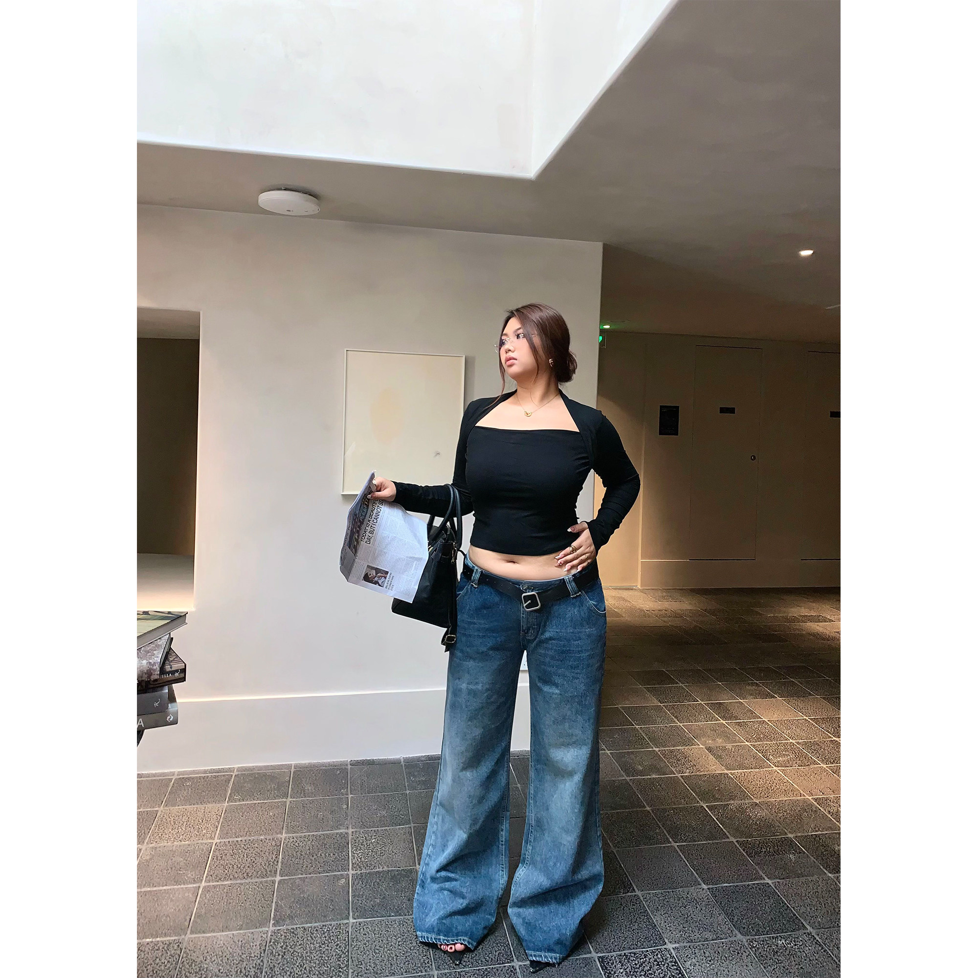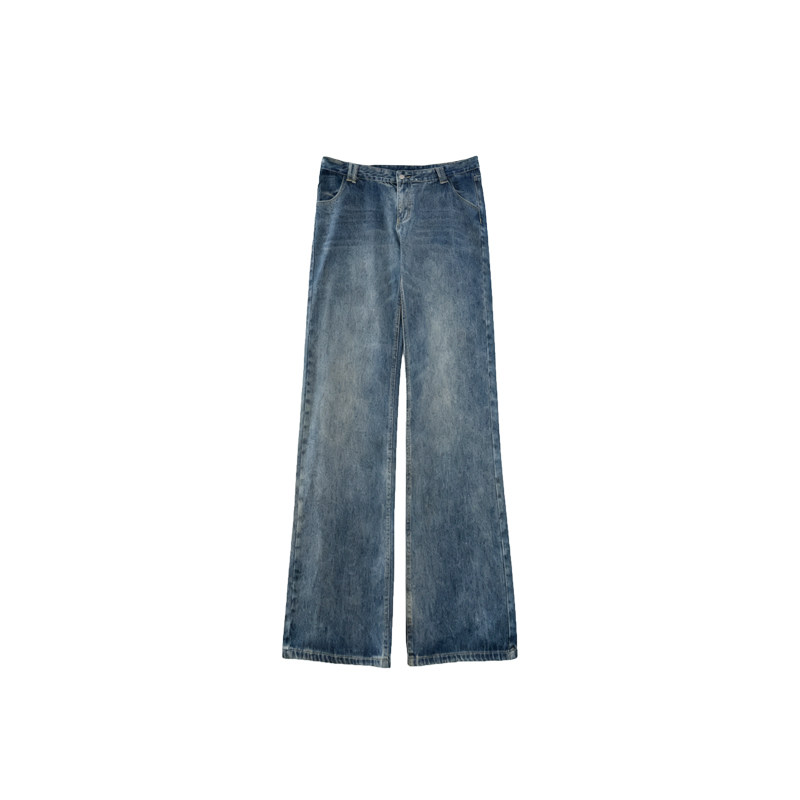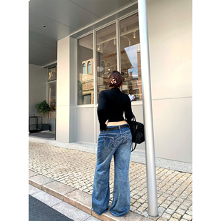 辣妹宽松百搭长裤 女秋冬大码 子 烫钻高腰牛仔裤 楠哥微胖mm复古美式