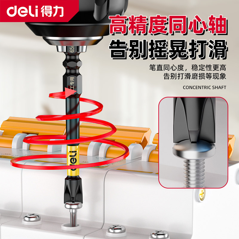 得力内六角批头防滑强磁圈电动螺丝刀套装 高硬度批头加长手电钻
