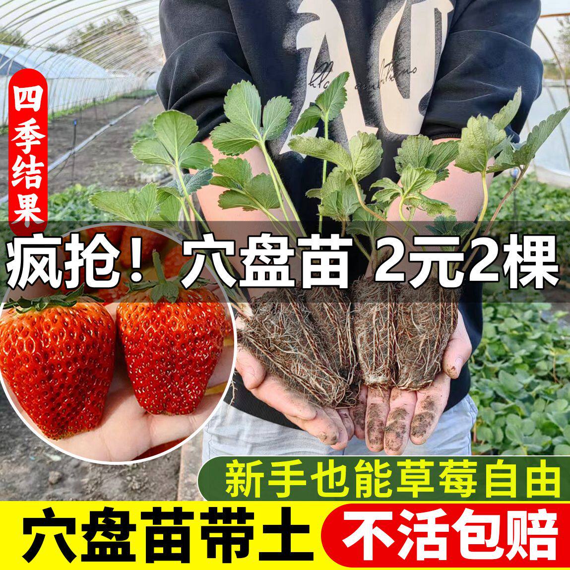 四季 结果阳台种植带花带果 草莓苗穴盘苗新苗盆栽带土隋珠红颜四季