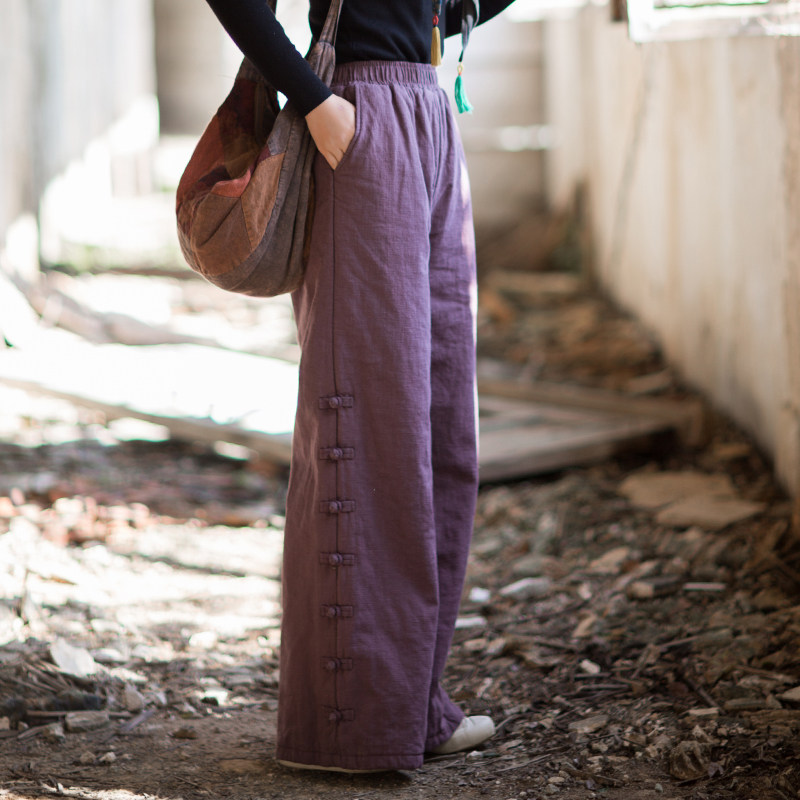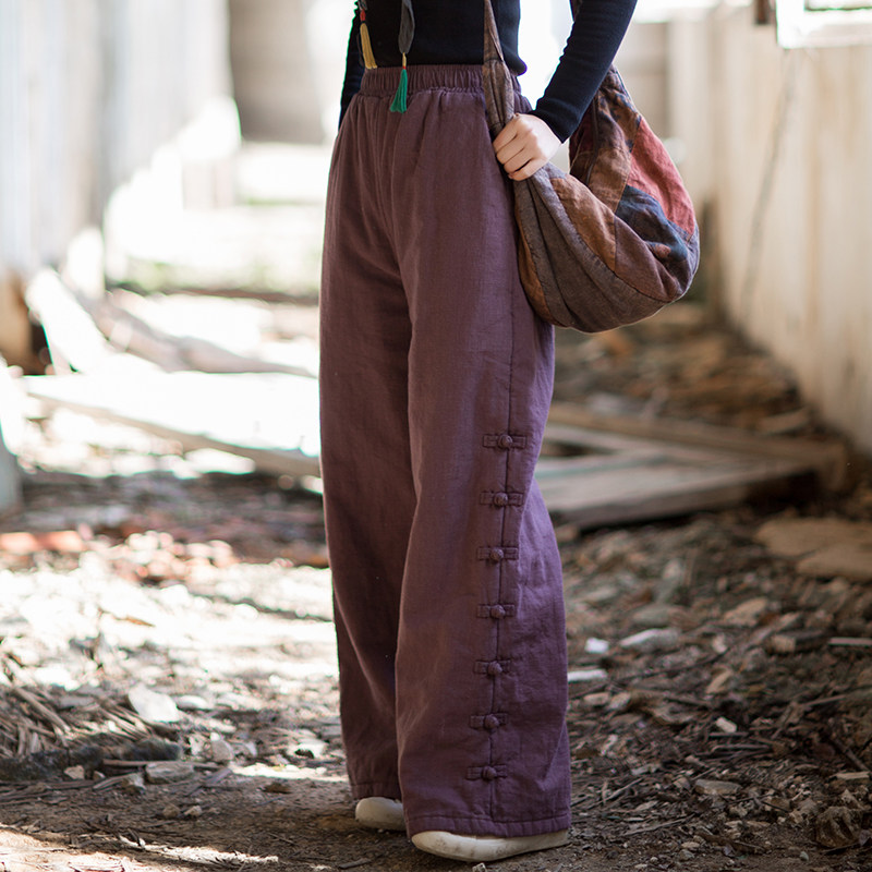 宽松直筒加厚保暖棉裤 女25年冬季 外穿 棉麻复古夹棉阔腿裤 新中式