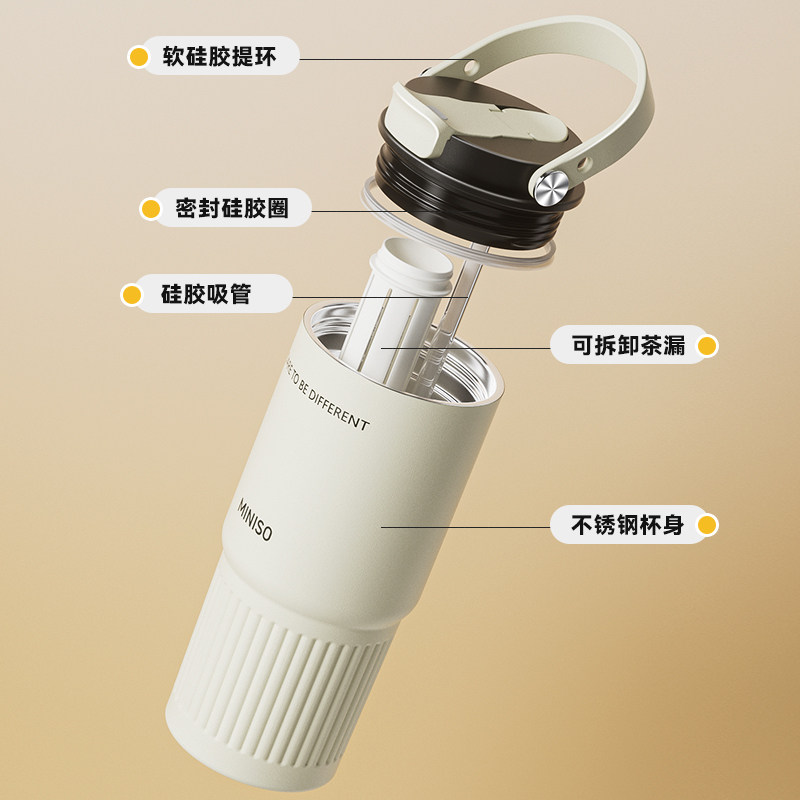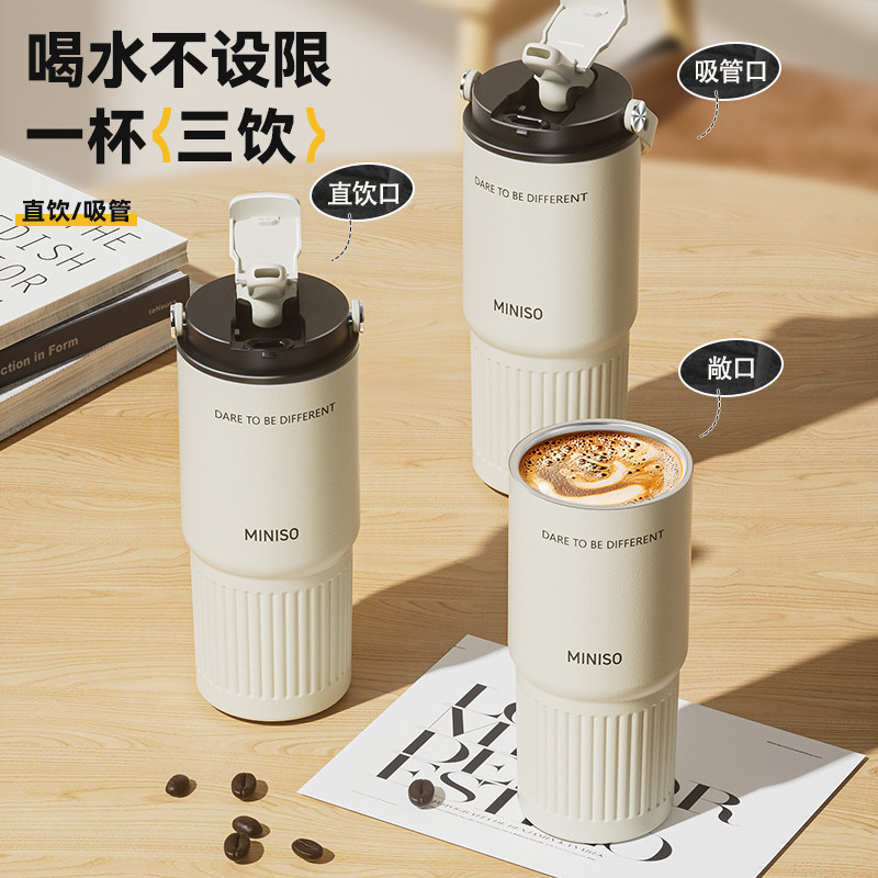 名创优品保温杯女生高颜值吸管冰霸杯大容量便携车载随行水杯子男