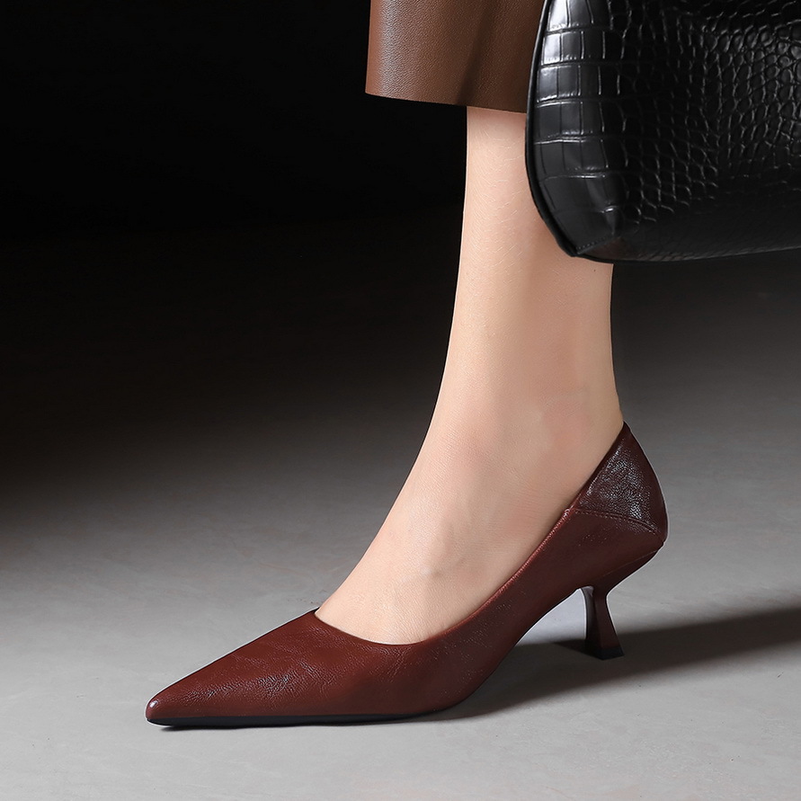 7032欧美简约风细跟高跟鞋 子女浅口尖头百搭显瘦职业工作气质