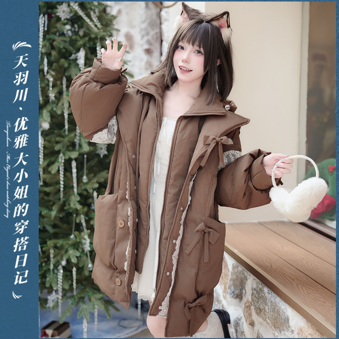 天羽川棉服原创西湖凝霜连帽棉衣保暖宽松女冬季 公主外套上衣百搭