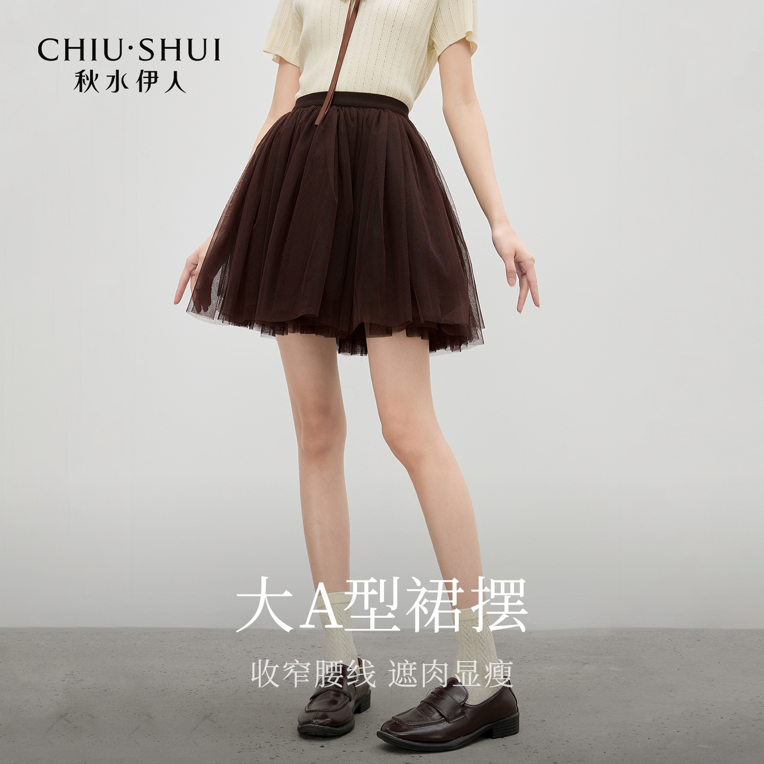 秋水伊人优雅裙子年百搭立体波点网纱半身裙 添添kindiy
