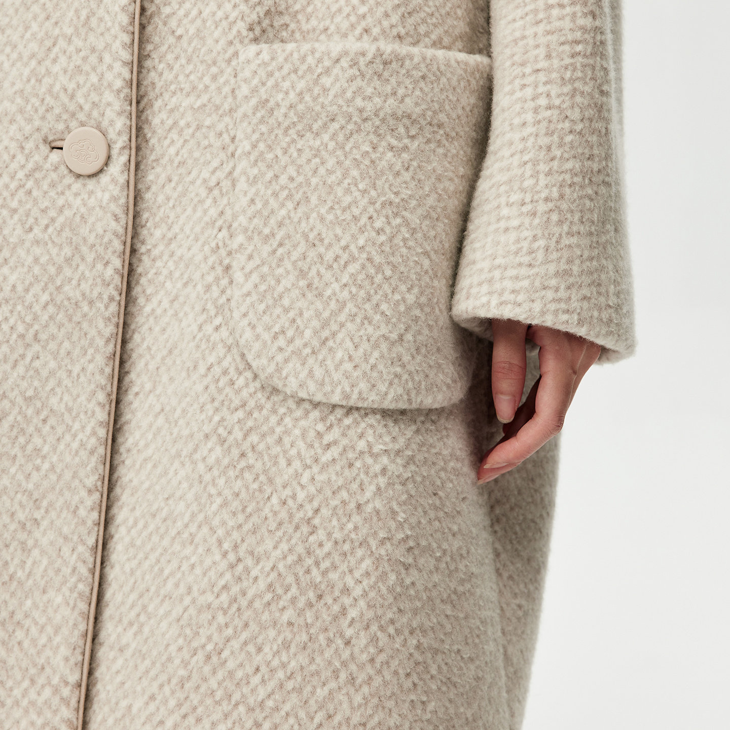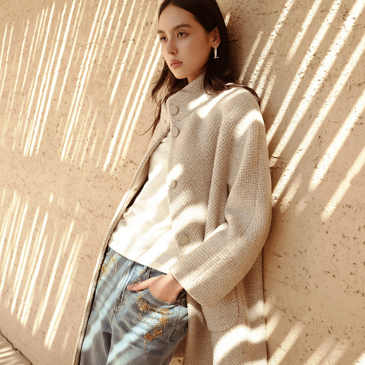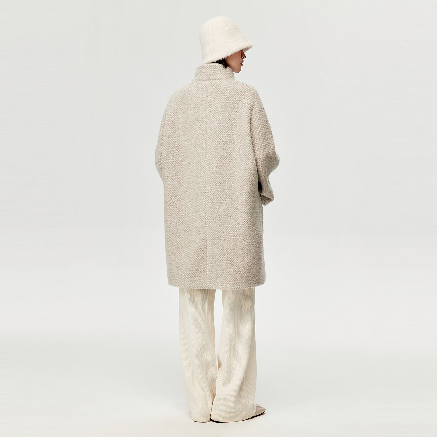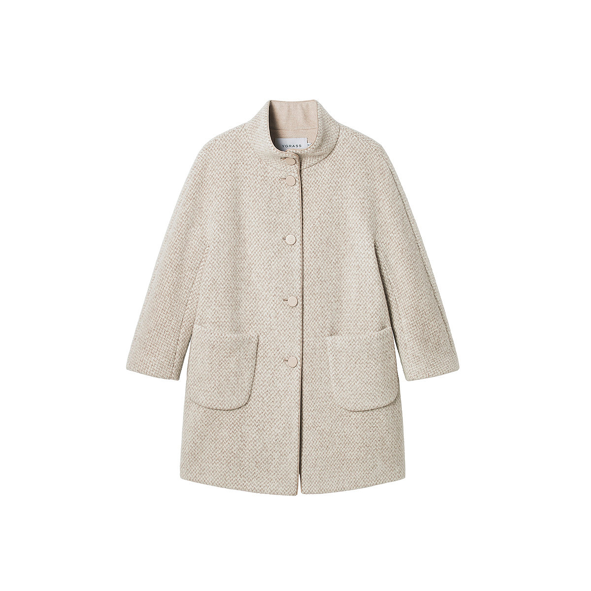 大衣外套女 连肩袖 VGRASS25冬新款 绵羊毛混纺圈圈呢宽松立领中长款