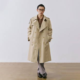 经典 2025双排扣休闲插肩袖 中长款 秋冬新款 大衣外套 战壕风衣男