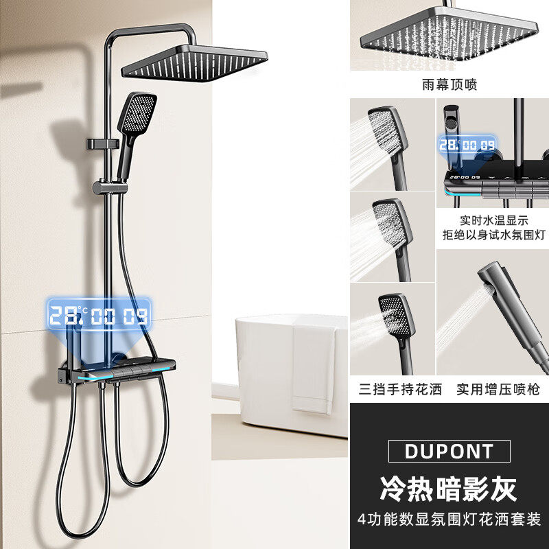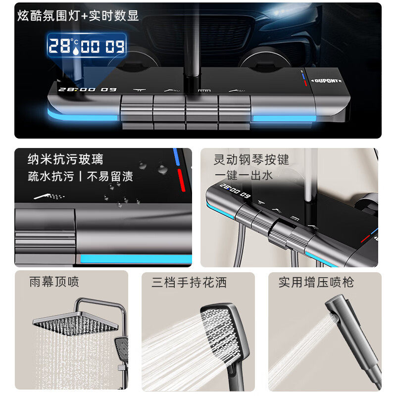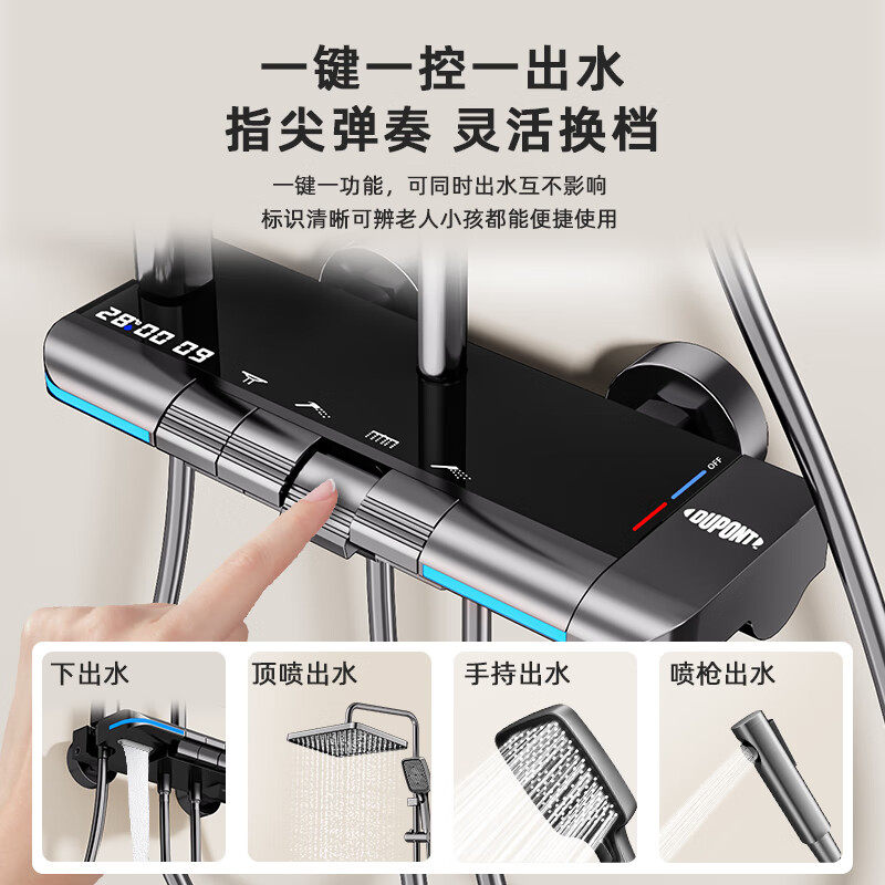 杜邦淋浴花洒全套钢琴键智能数显卫浴增压花洒套装 一整套