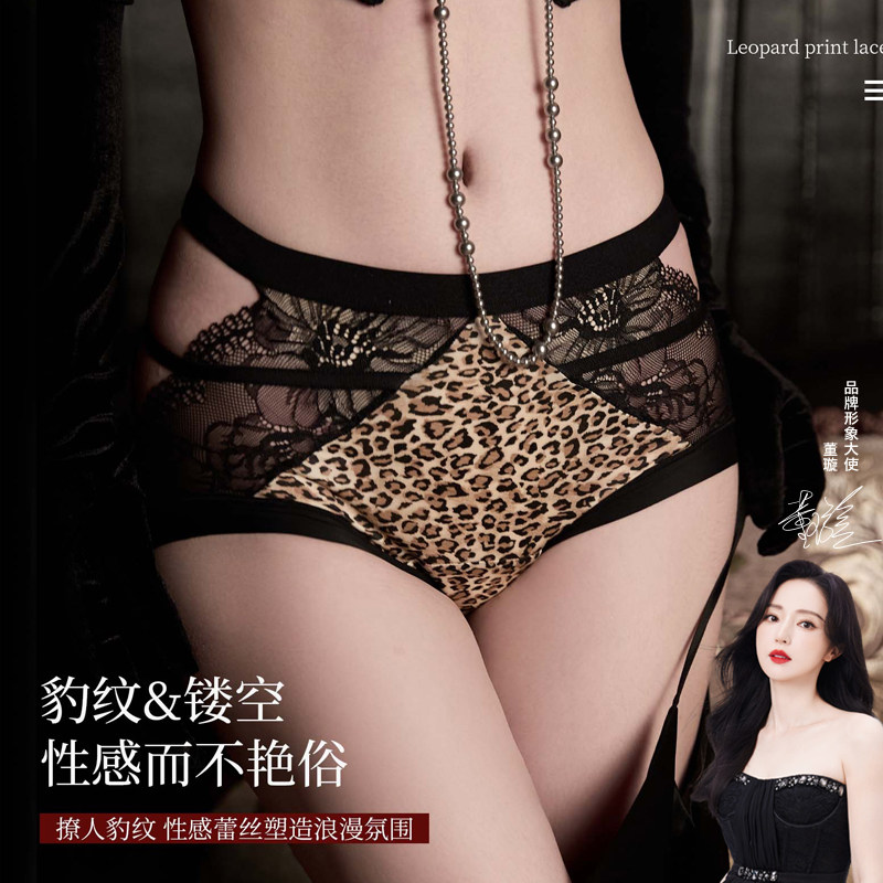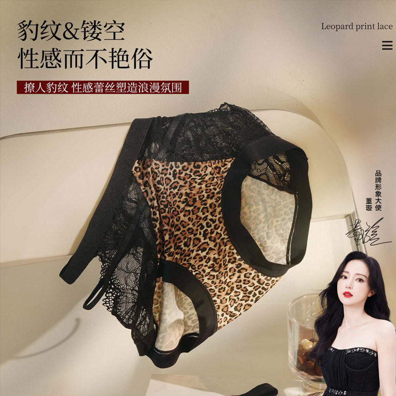 董璇推荐 三角裤 内裤 蕾丝豹纹中腰舒适内裤 女2553 女法式 UFEEL