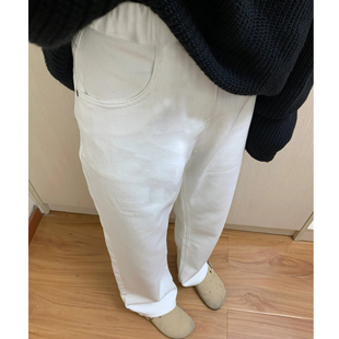宽松休闲显瘦直筒小阔腿拖地裤 春秋外穿时尚 子 牛仔裤 孕妇白色窄版