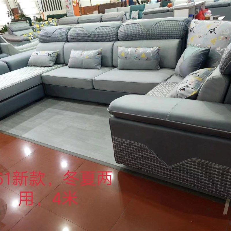 欧式 软垫乳胶沙发科技布皮艺沙发冬夏两用凉席自由摆放L型U型3米6