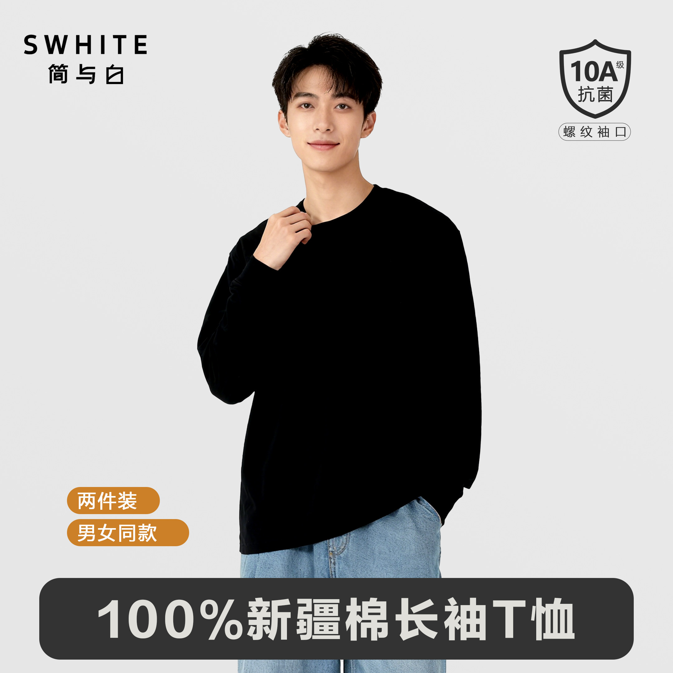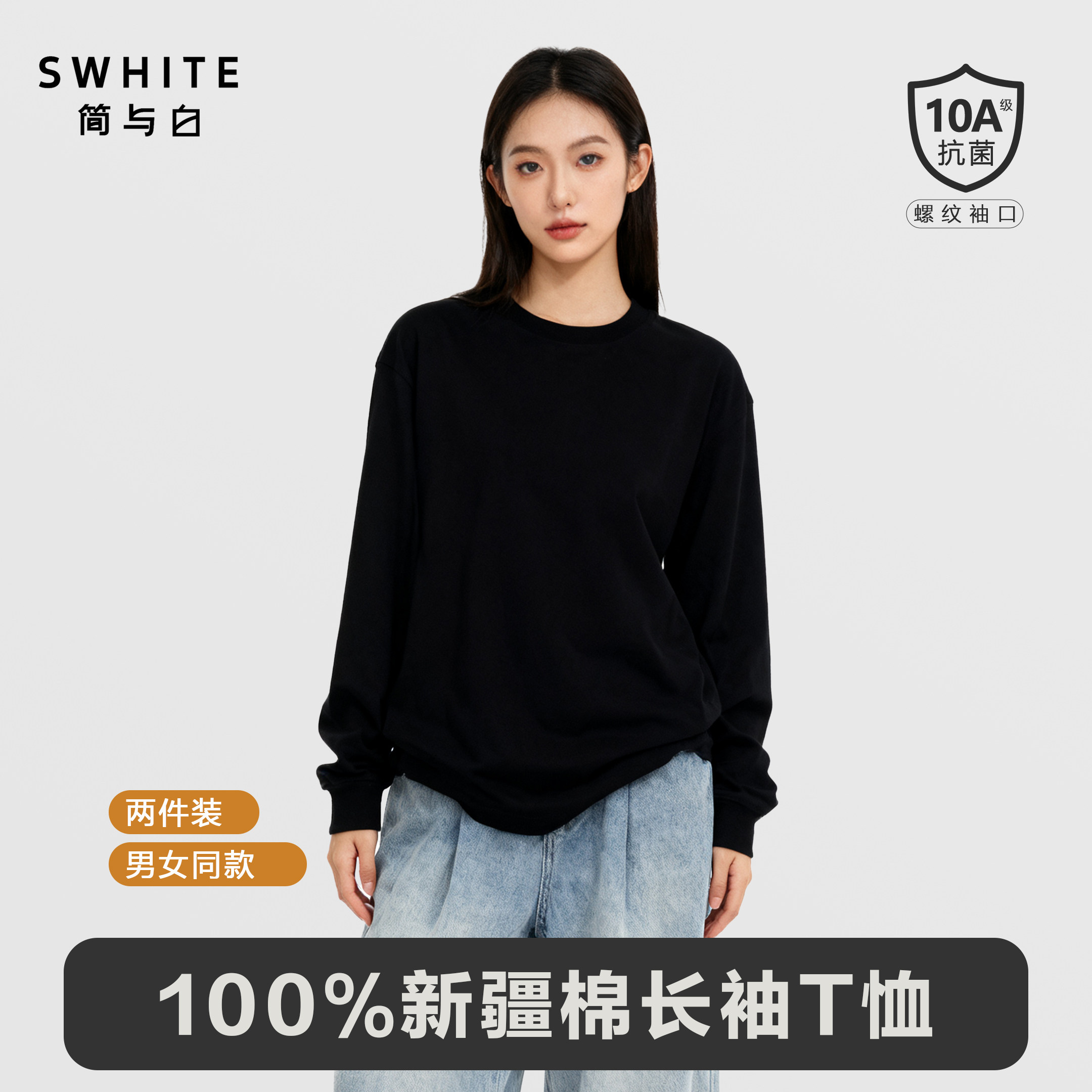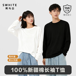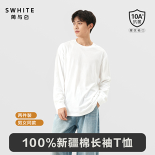 口 亲肤透气白小T圆领舒适打底螺纹袖 「简与白」纯棉长袖 T恤2件装