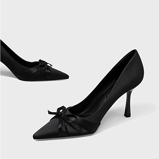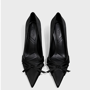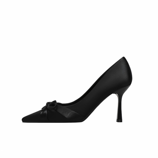 尖头细跟单鞋 气质高级不累脚蝴蝶结法式 女 女新款 黑色绝美小高跟鞋