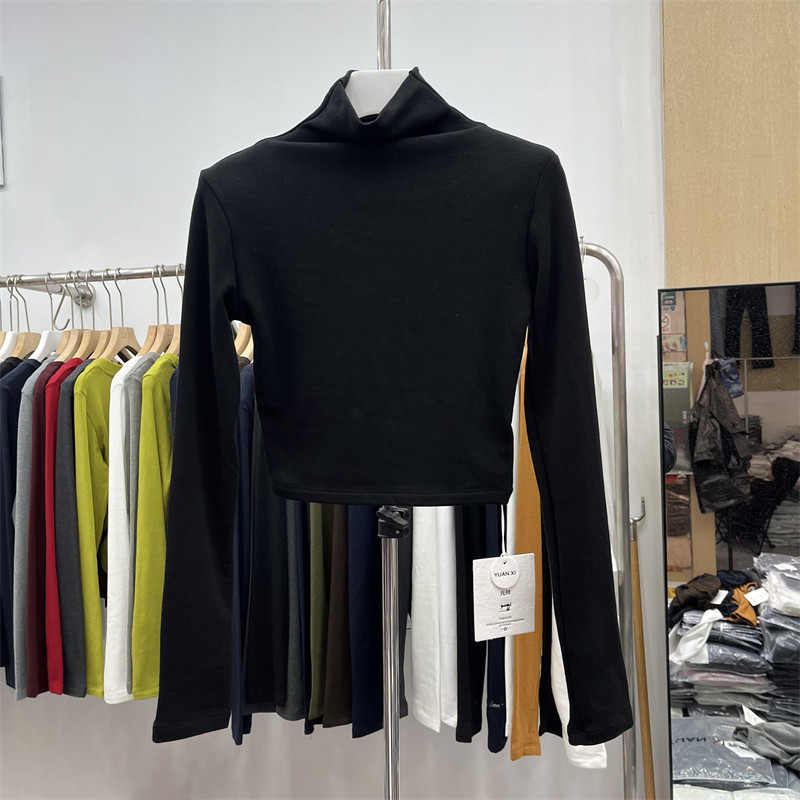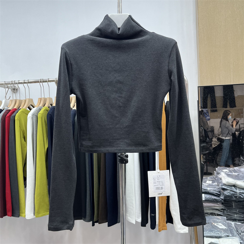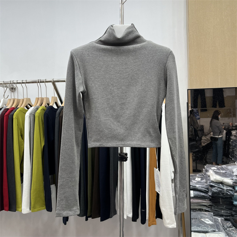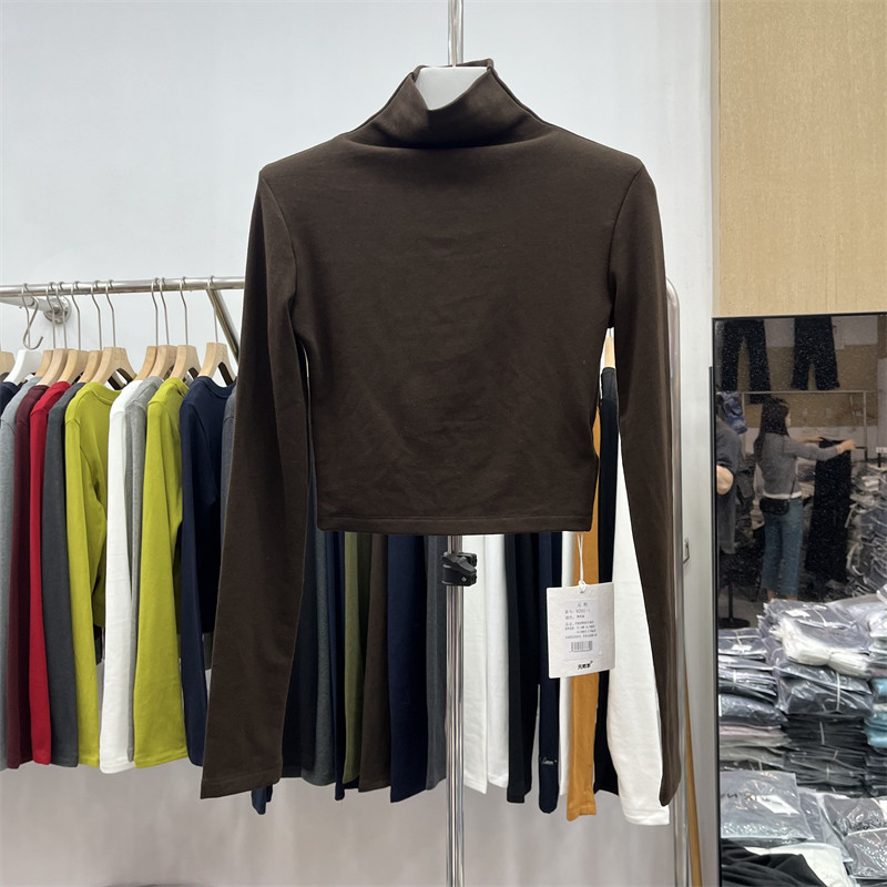 小立领基础款 T恤2025秋冬修身 上衣 女半高长袖 白色德绒内搭打底衫
