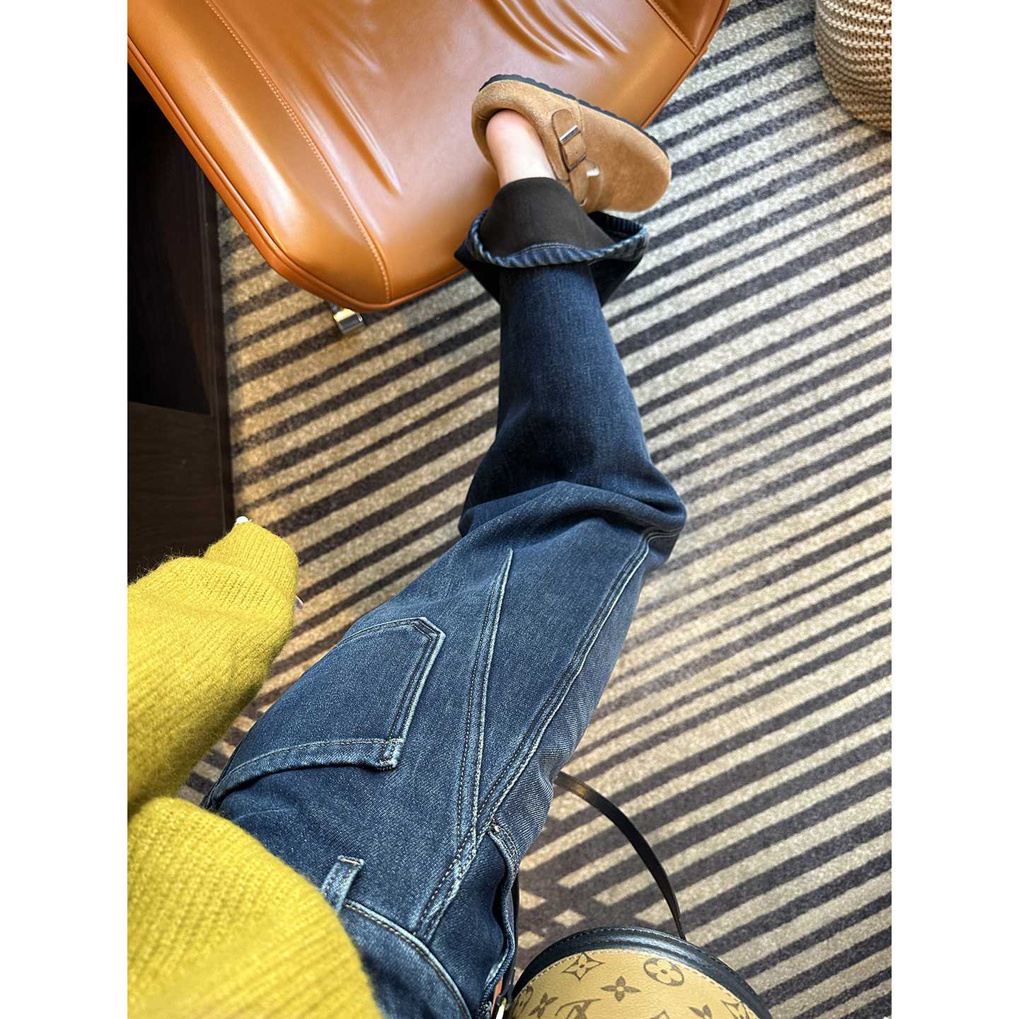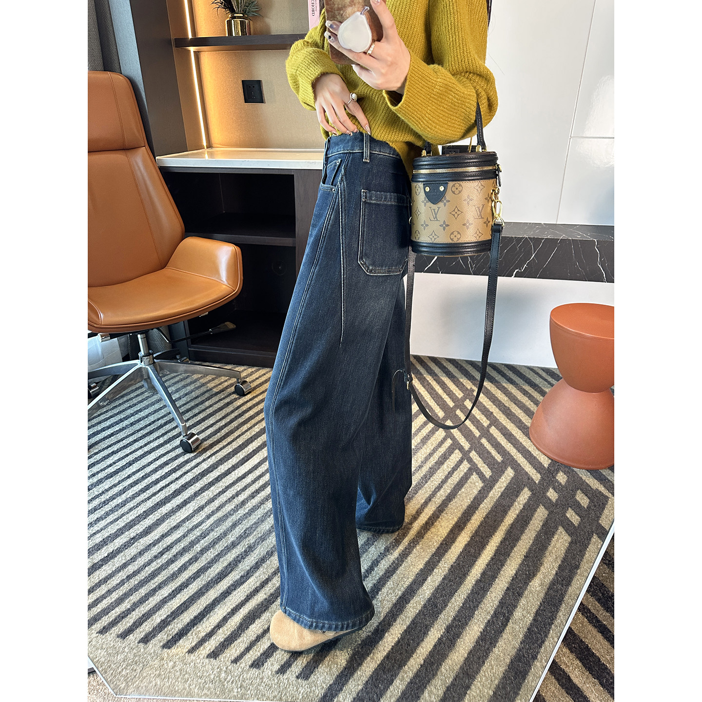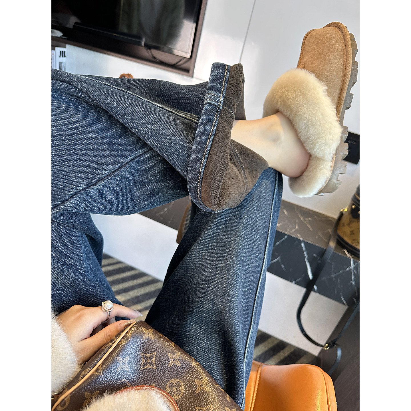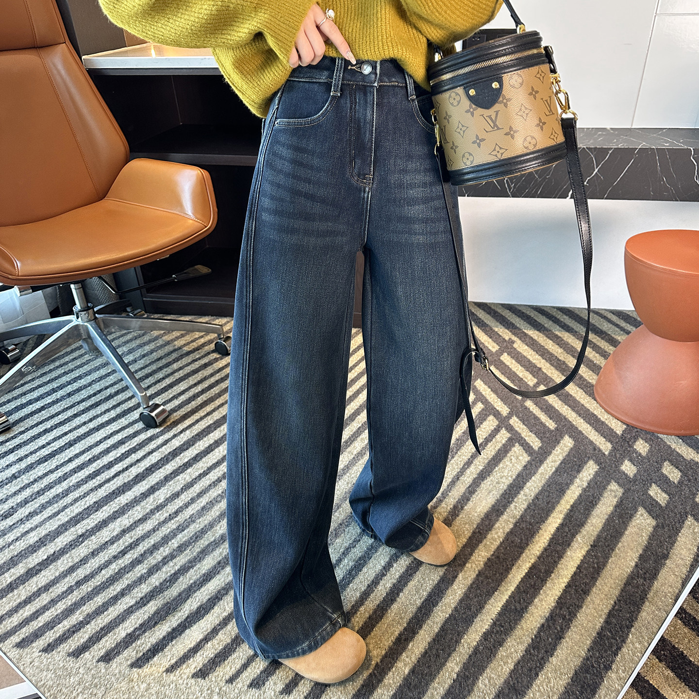 加绒保暖宽松阔腿长裤 女秋冬新款 遮胯显瘦弯刀牛仔裤 过冬必入