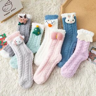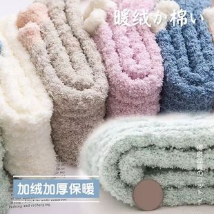 珊瑚绒袜子女冬季 加绒加厚中筒袜子居家睡眠地板袜产后保暖月子袜