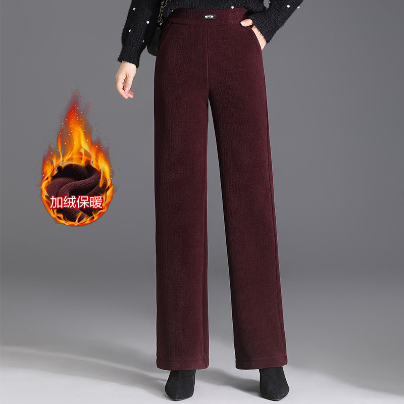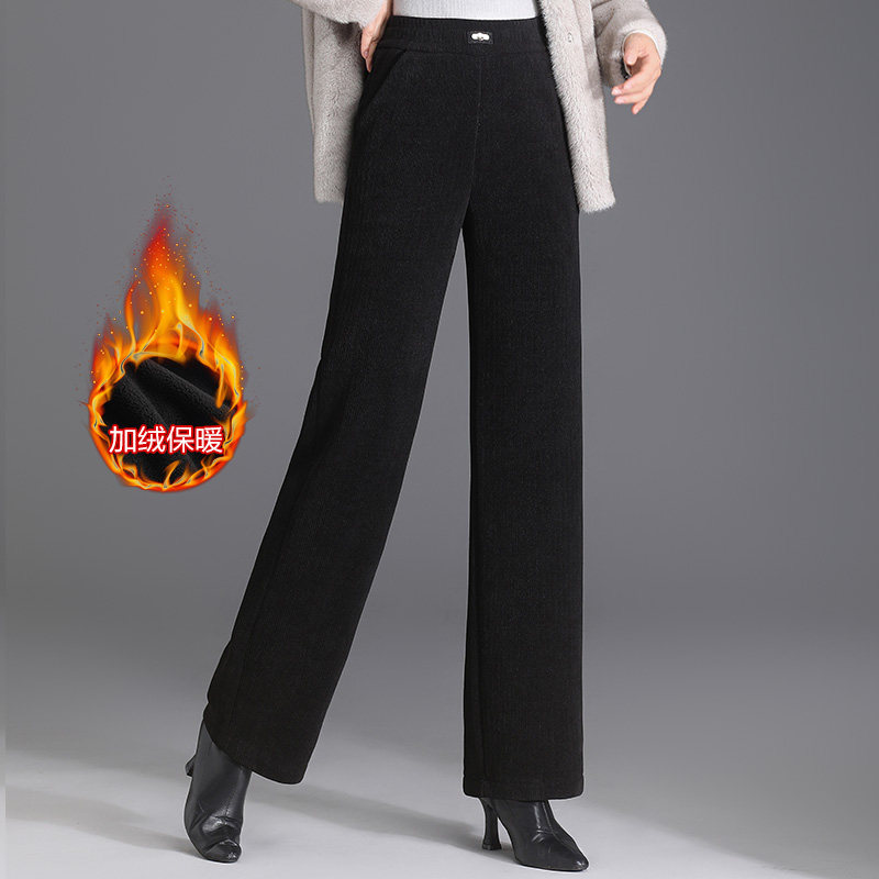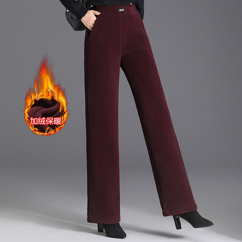 子休闲长裤 高腰直筒女士裤 灯芯绒加绒加厚女裤 啄木鸟中老年秋冬款