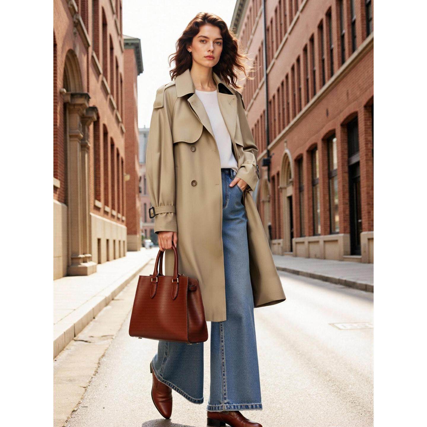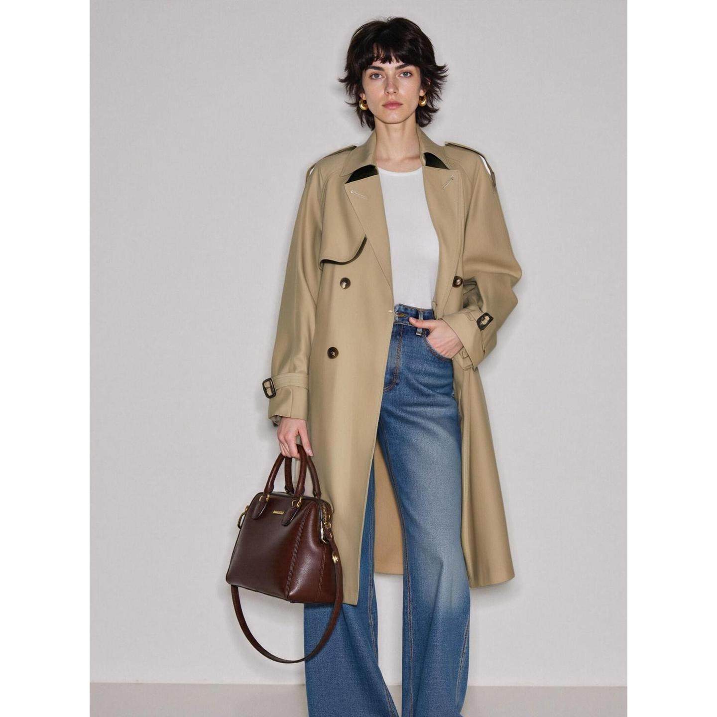 工装 Basic 中长款 百家好卡其色风衣外套女2025秋冬新款 上衣 House