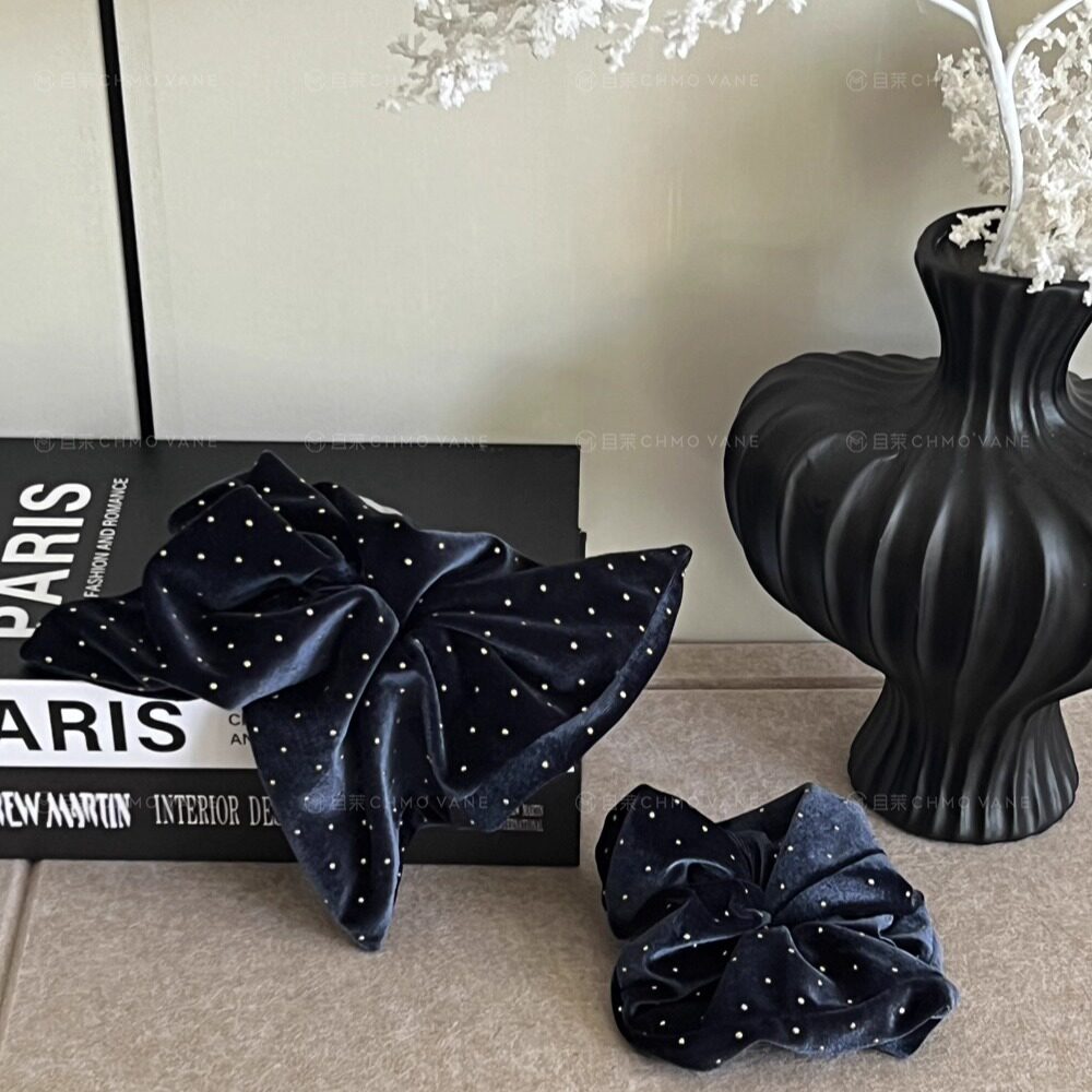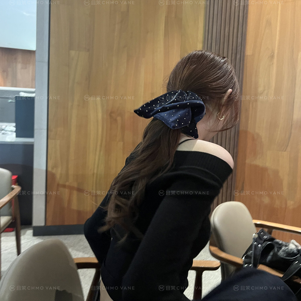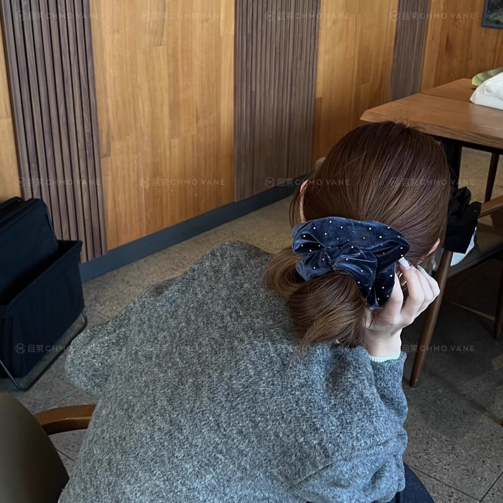 头饰发饰 丝绒烫金方巾肠圈复古高级丝绒大肠圈新款 且茉 蓝调时刻