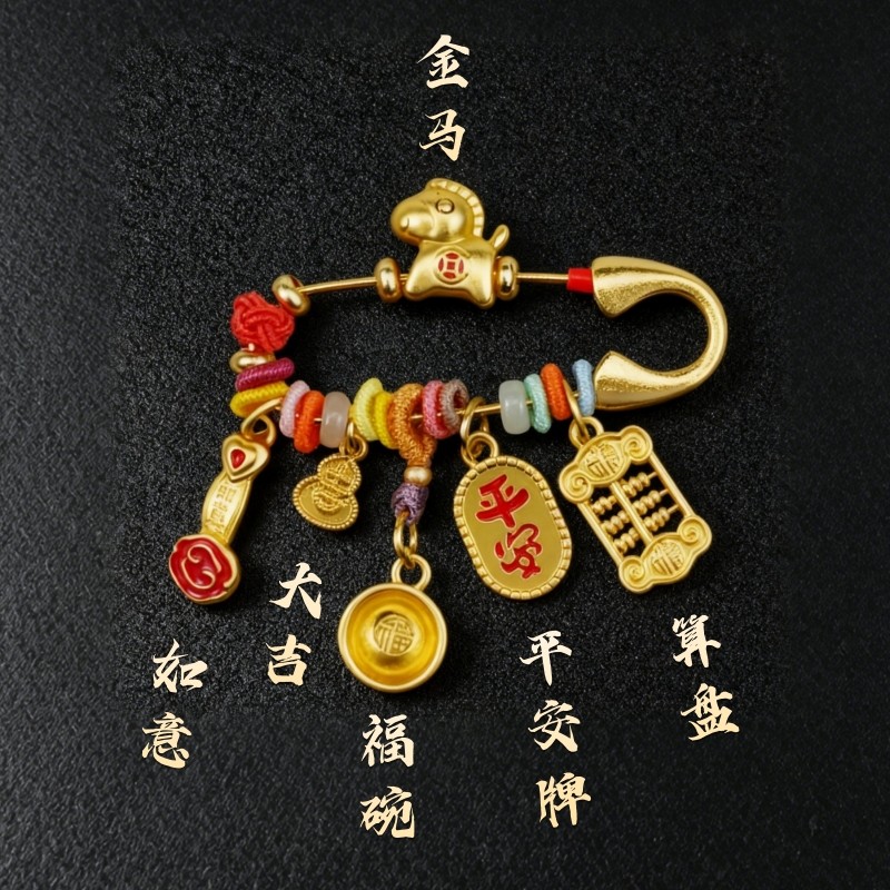 马年平安压惊别针孕妇安全胸针宝宝婴儿别针扣生肖随身挂件护身符