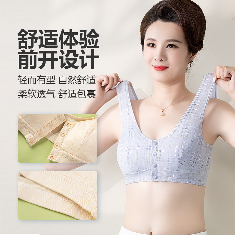 妈妈内衣文胸中年妇女妈妈款 无钢圈纯棉舒适 女中老年人专用前扣式