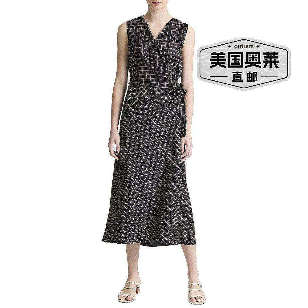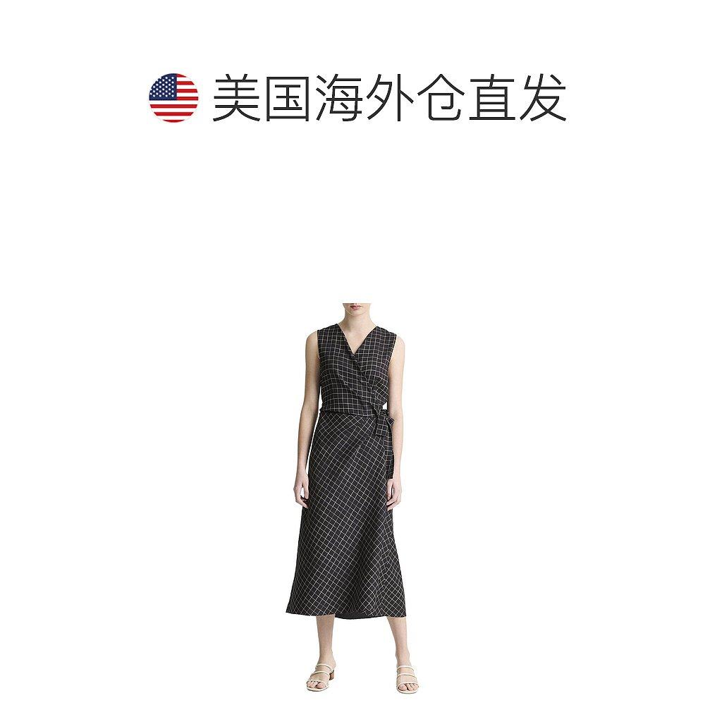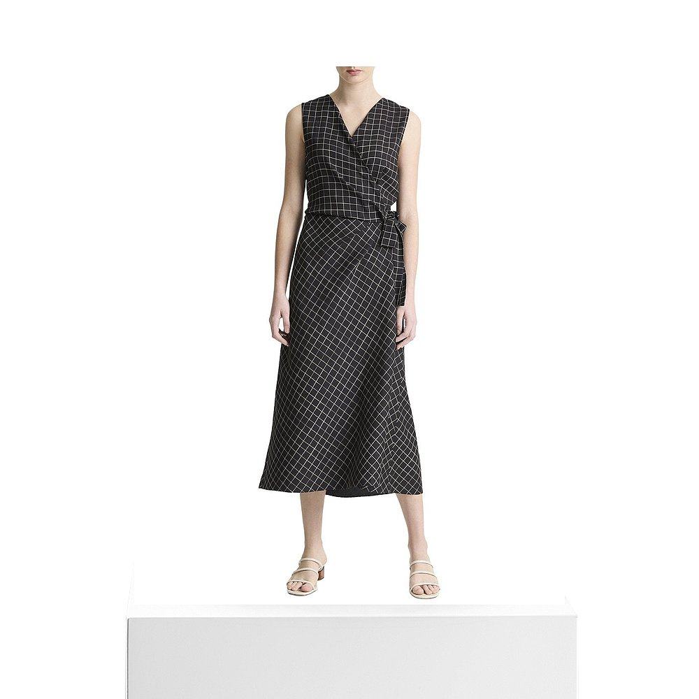 Sleeveless Plaid Drape Wrap black 自营Vince Dress Trellis