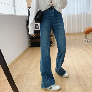 女春季 春秋长裤 裤 喇叭马蹄裤 子修身 毛边四面弹高腰显瘦微喇牛仔裤