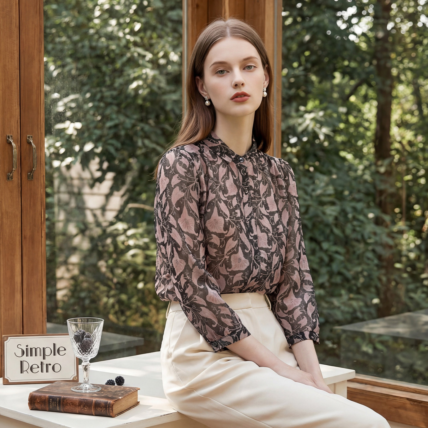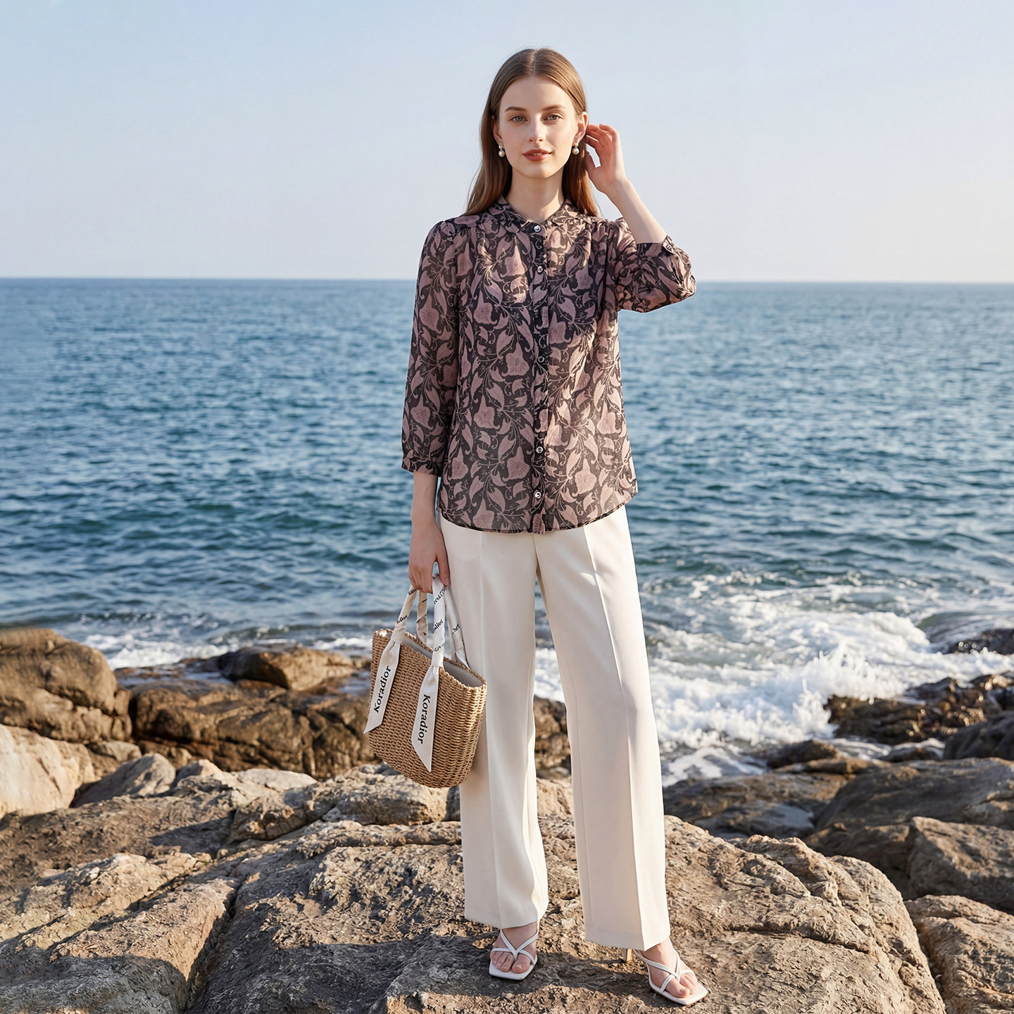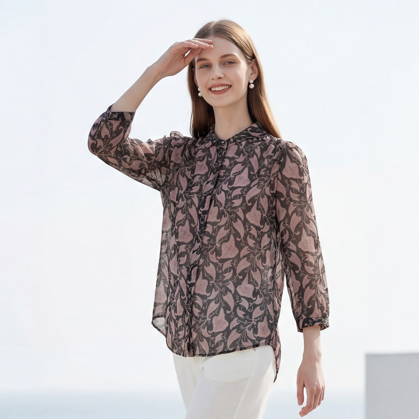 女装 马天奴2026春季 上衣衬衣气质时尚 咖色印花莱赛尔混纺衬衫 新款