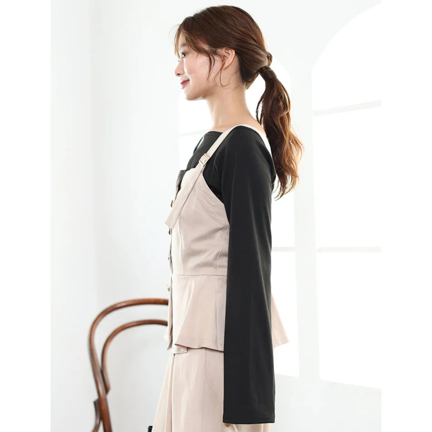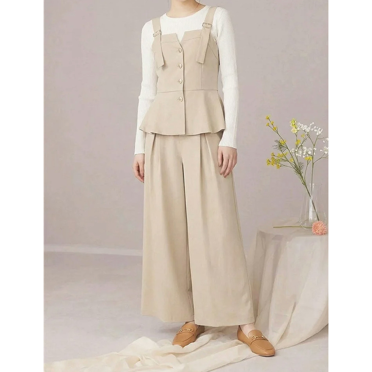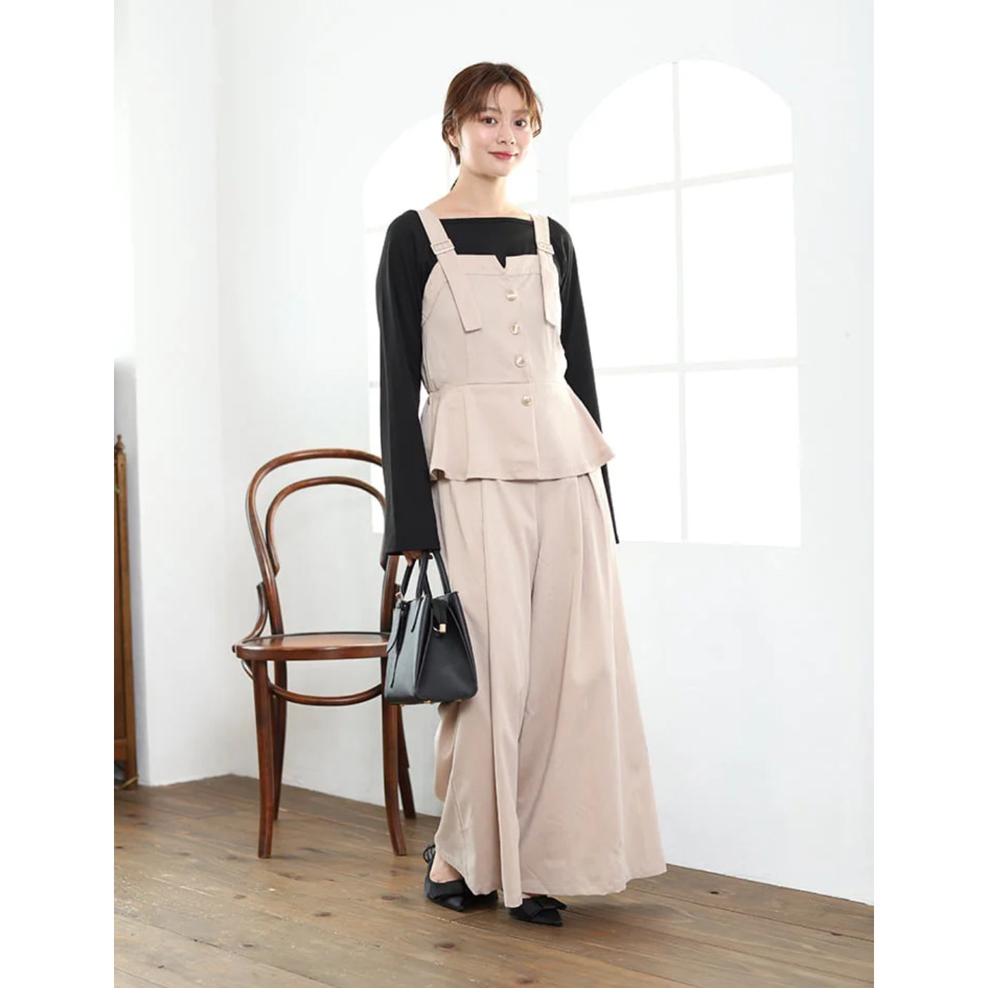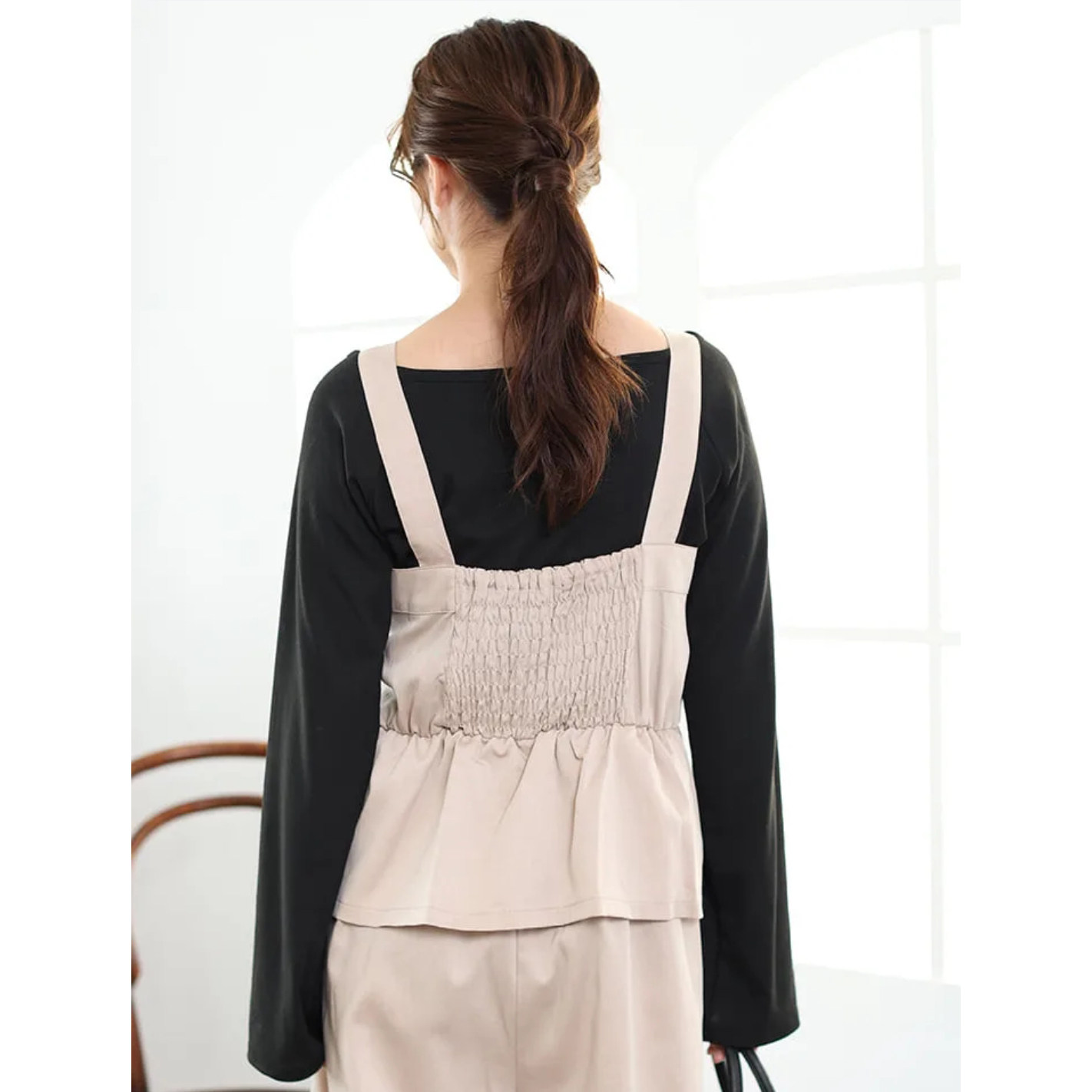 32070 休闲百搭可调肩带后背松紧连体背带裤 日单品牌秋冬新款 时尚