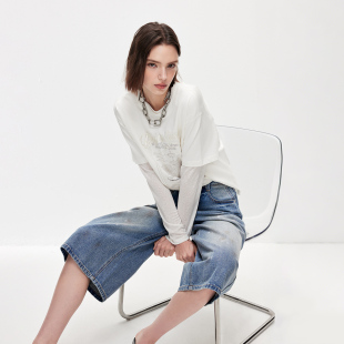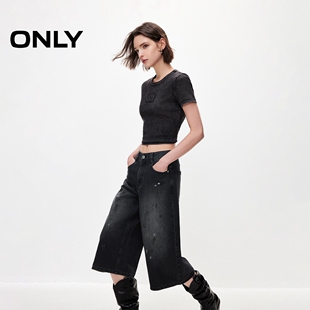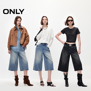 复古磨白做旧泼墨七分阔腿短裤 新款 ONLY2026春季 牛仔裤 脏脏裤