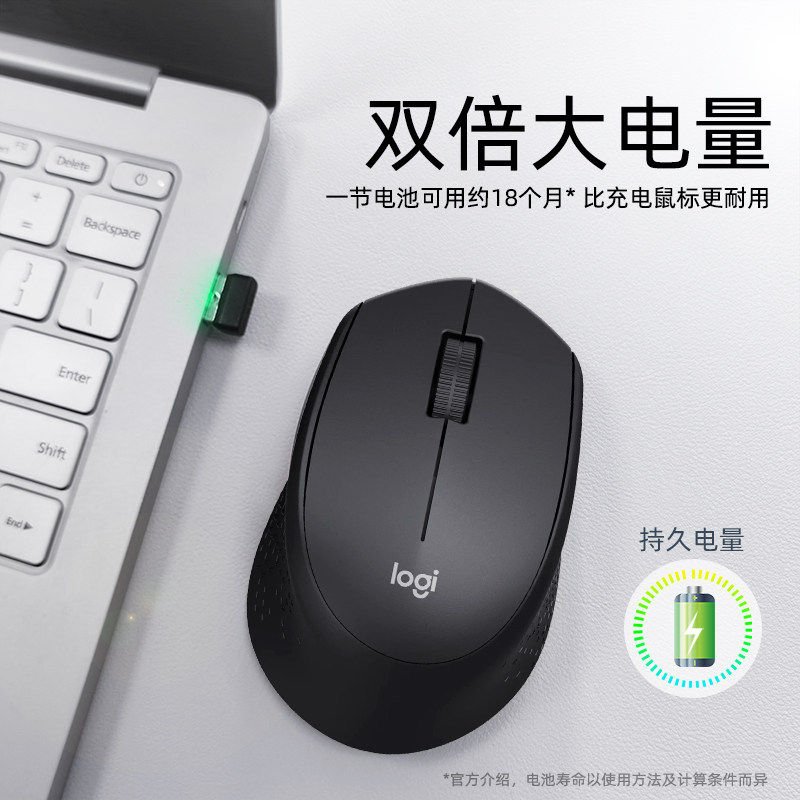 罗技M280无线鼠标办公家用USB连接即插即用电池持久续航轻巧拆封