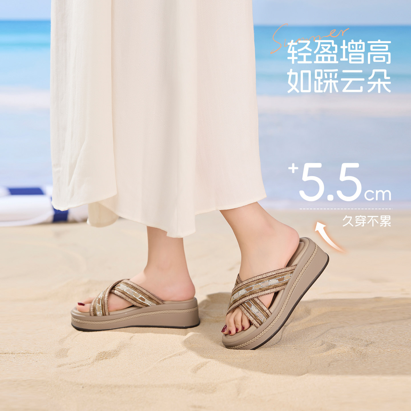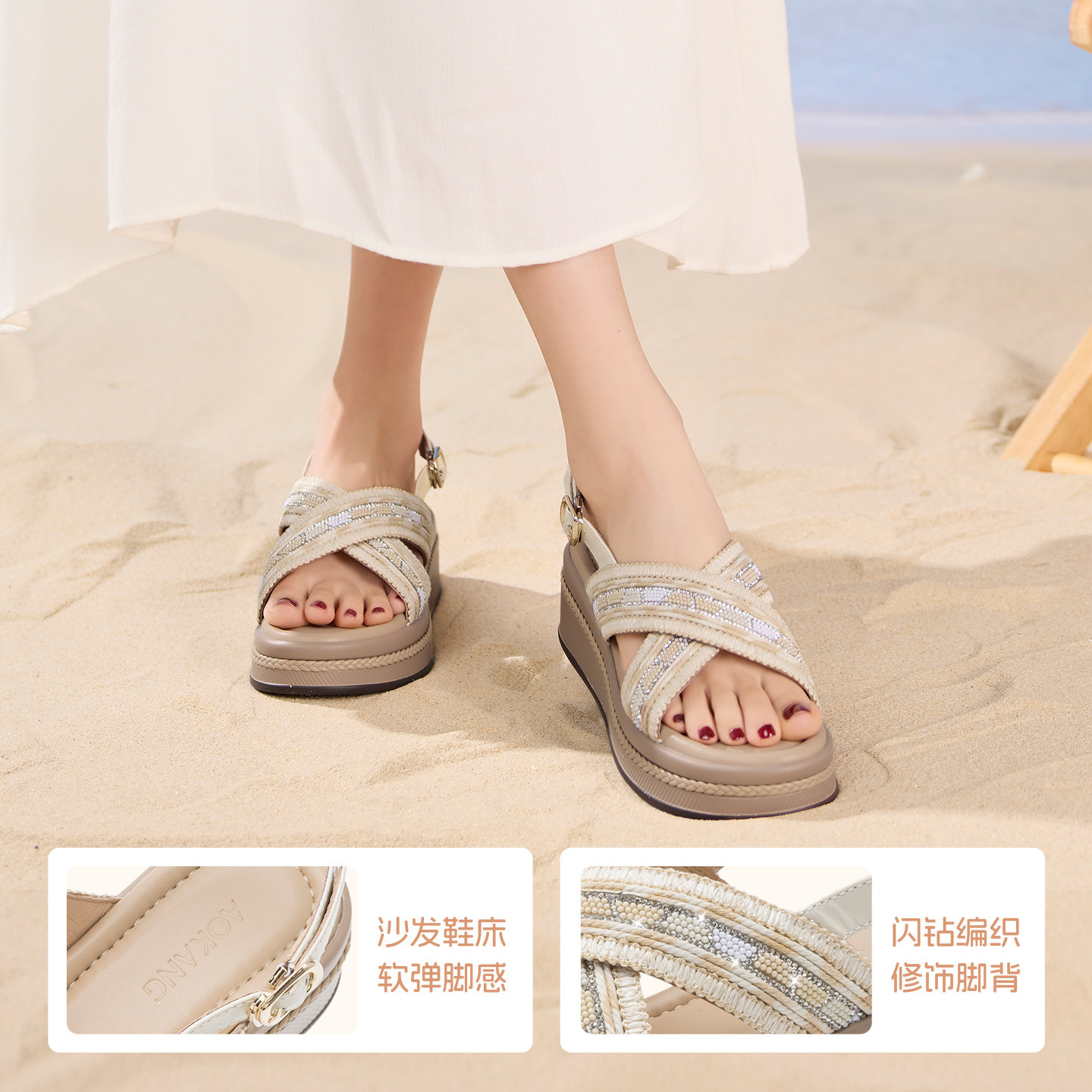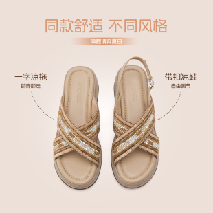 凉拖名族风编织软底坡跟增高百搭凉鞋 奥康 新款 2026夏季 女鞋