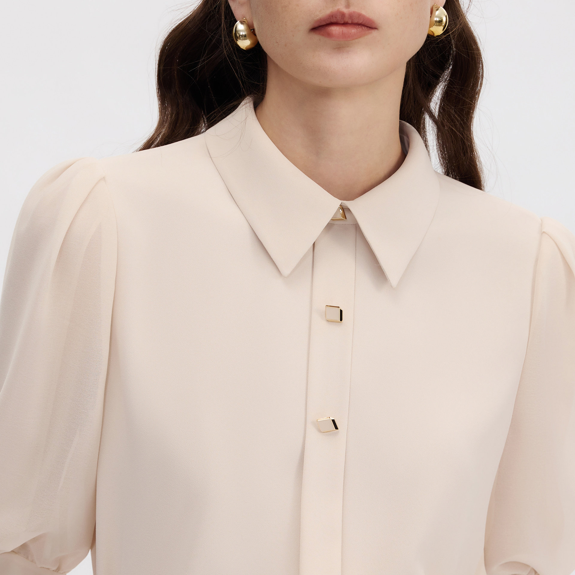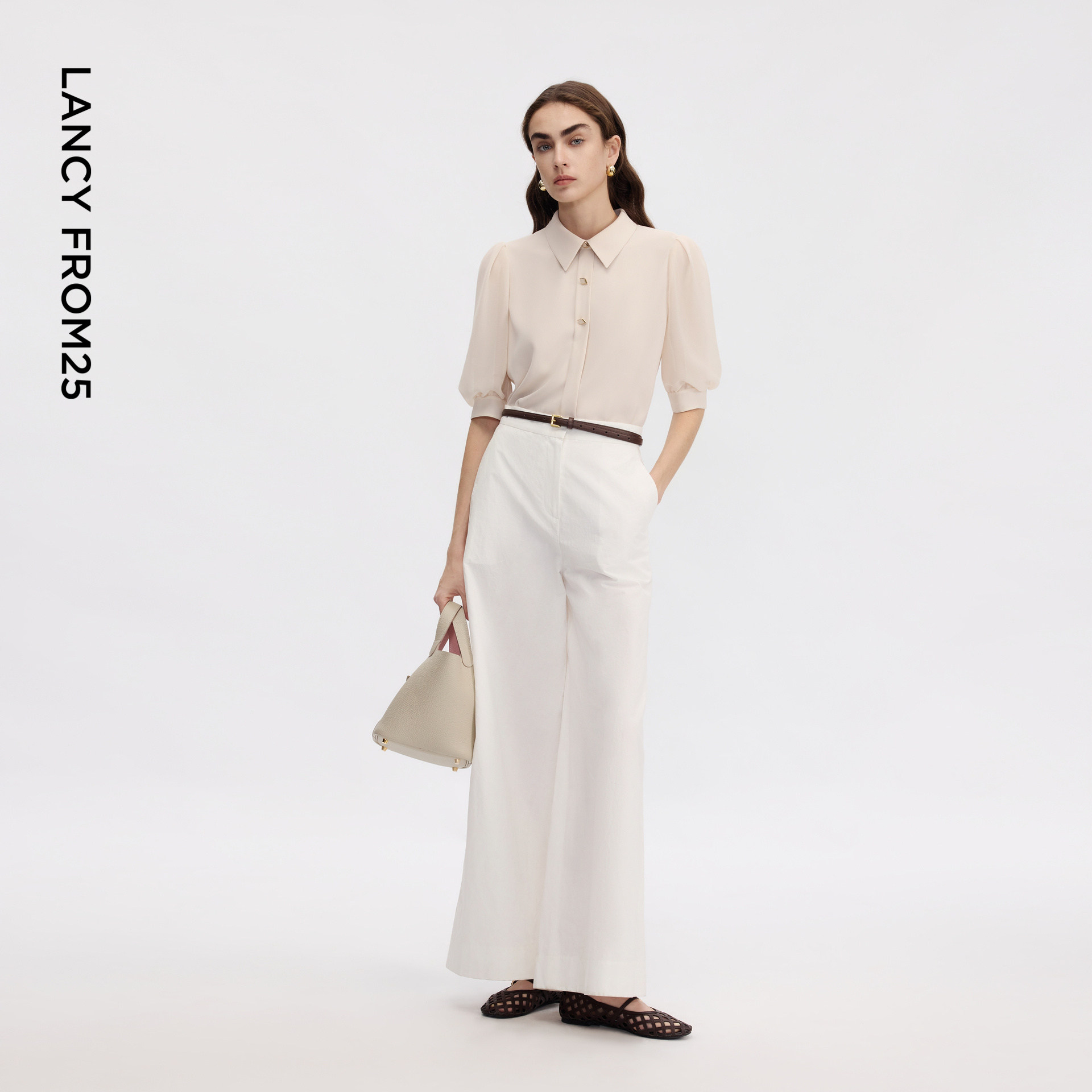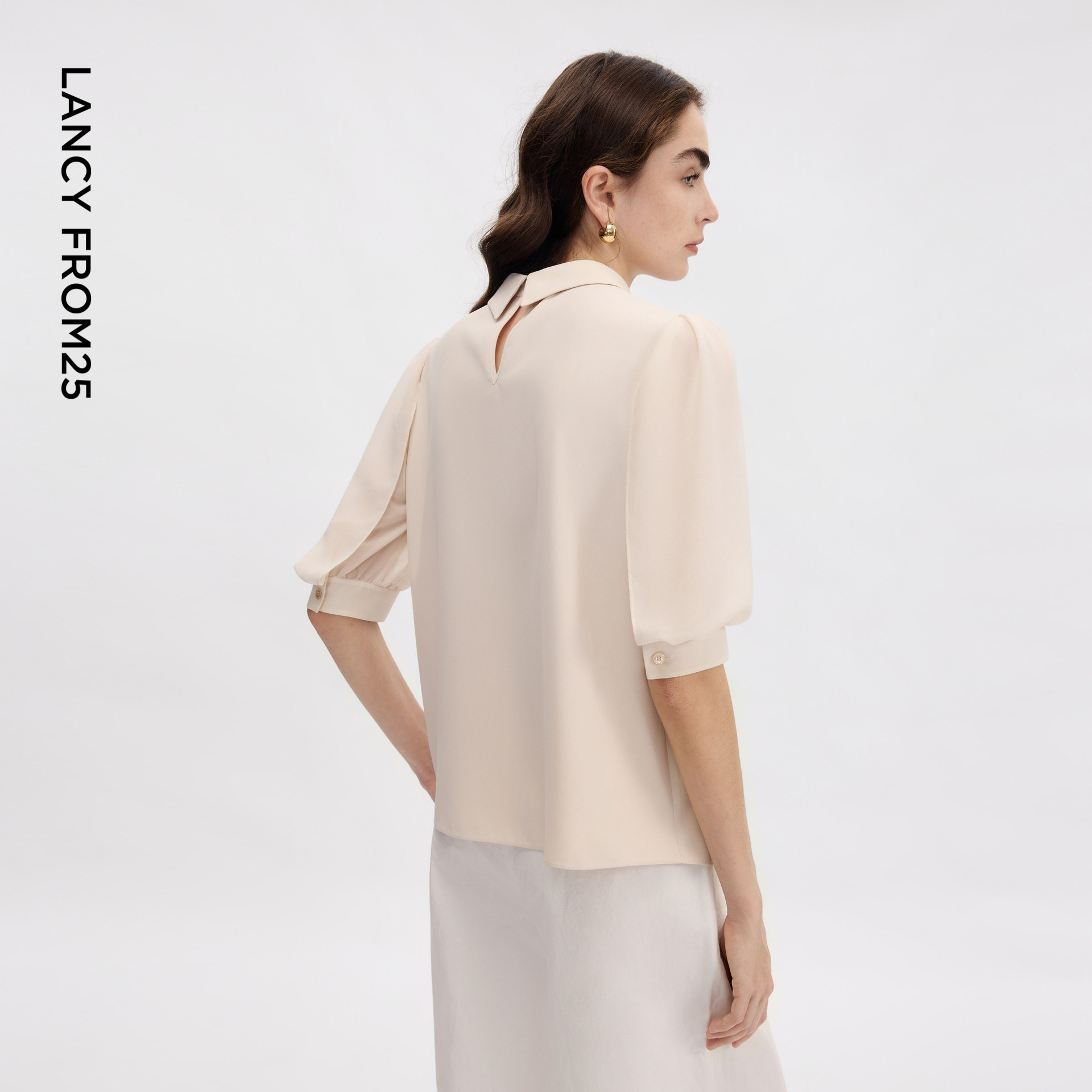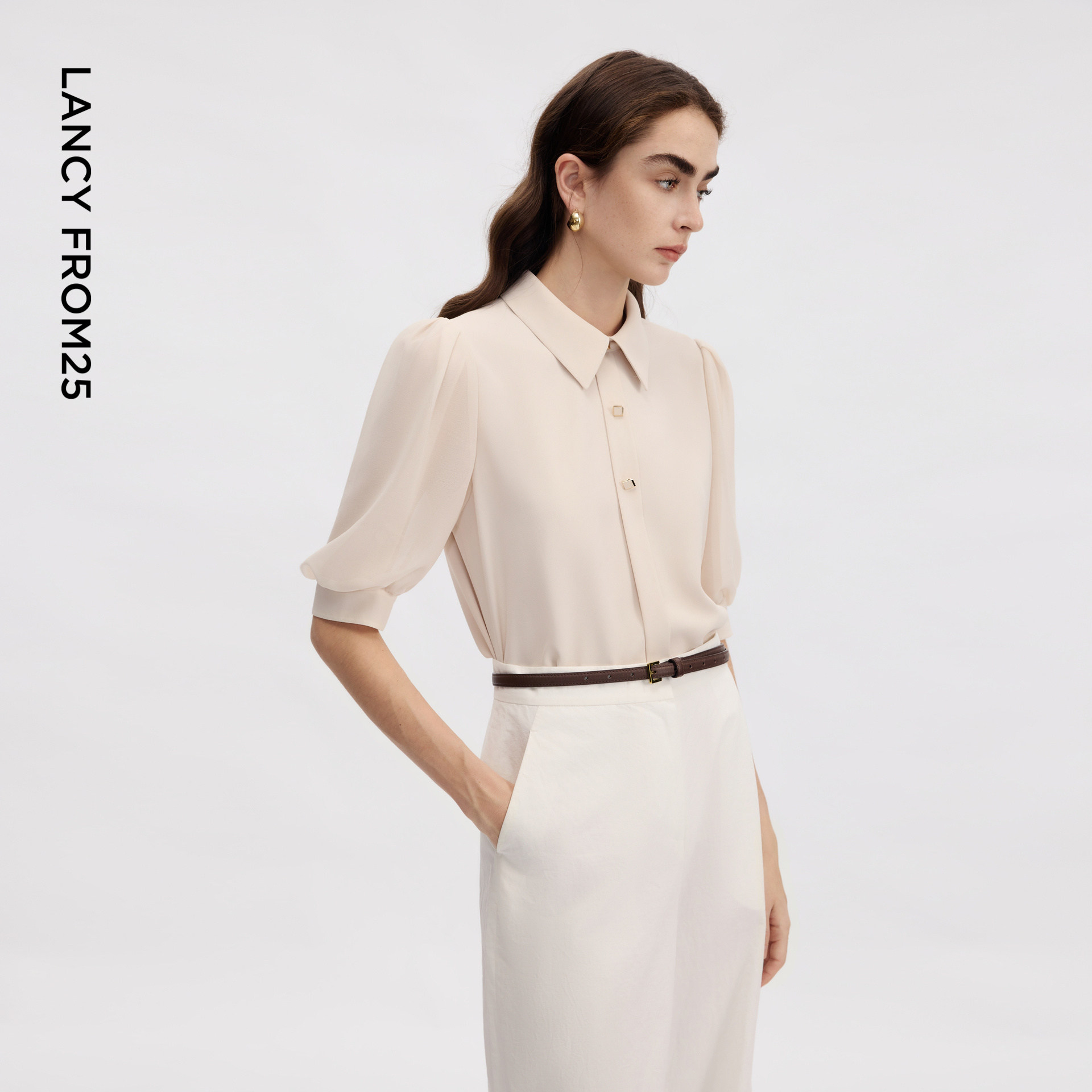 新款 朗姿泡泡袖 气质百搭复古风通勤上衣2026年夏季 衬衫 女 翻领短袖