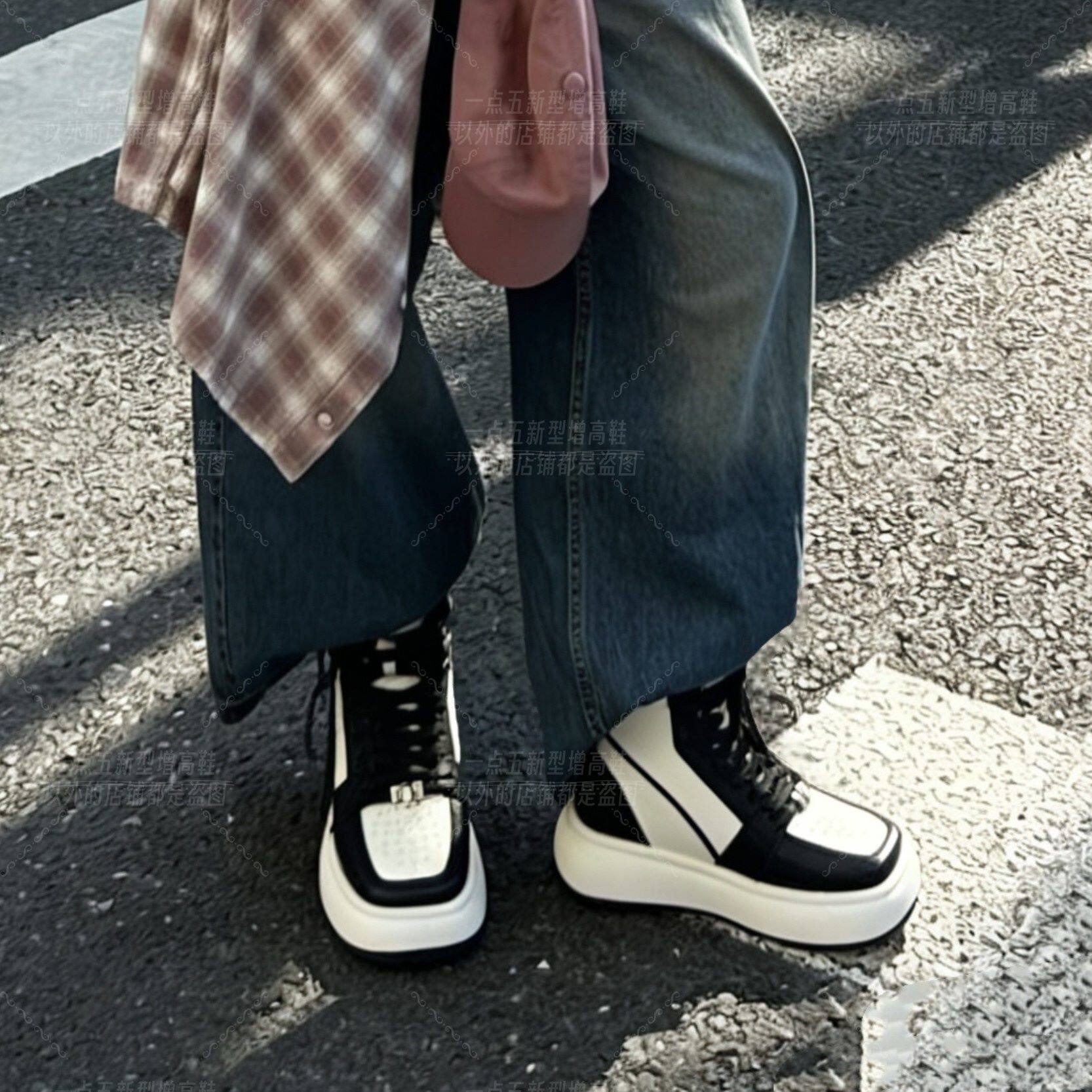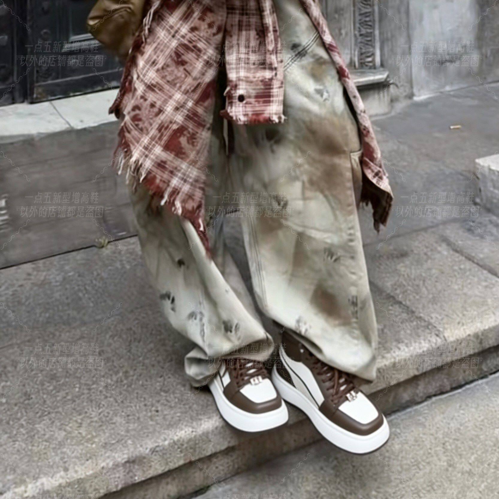 百搭潮鞋 一点五隐形增高15 时尚 女士休闲定制款 12CM方头板鞋