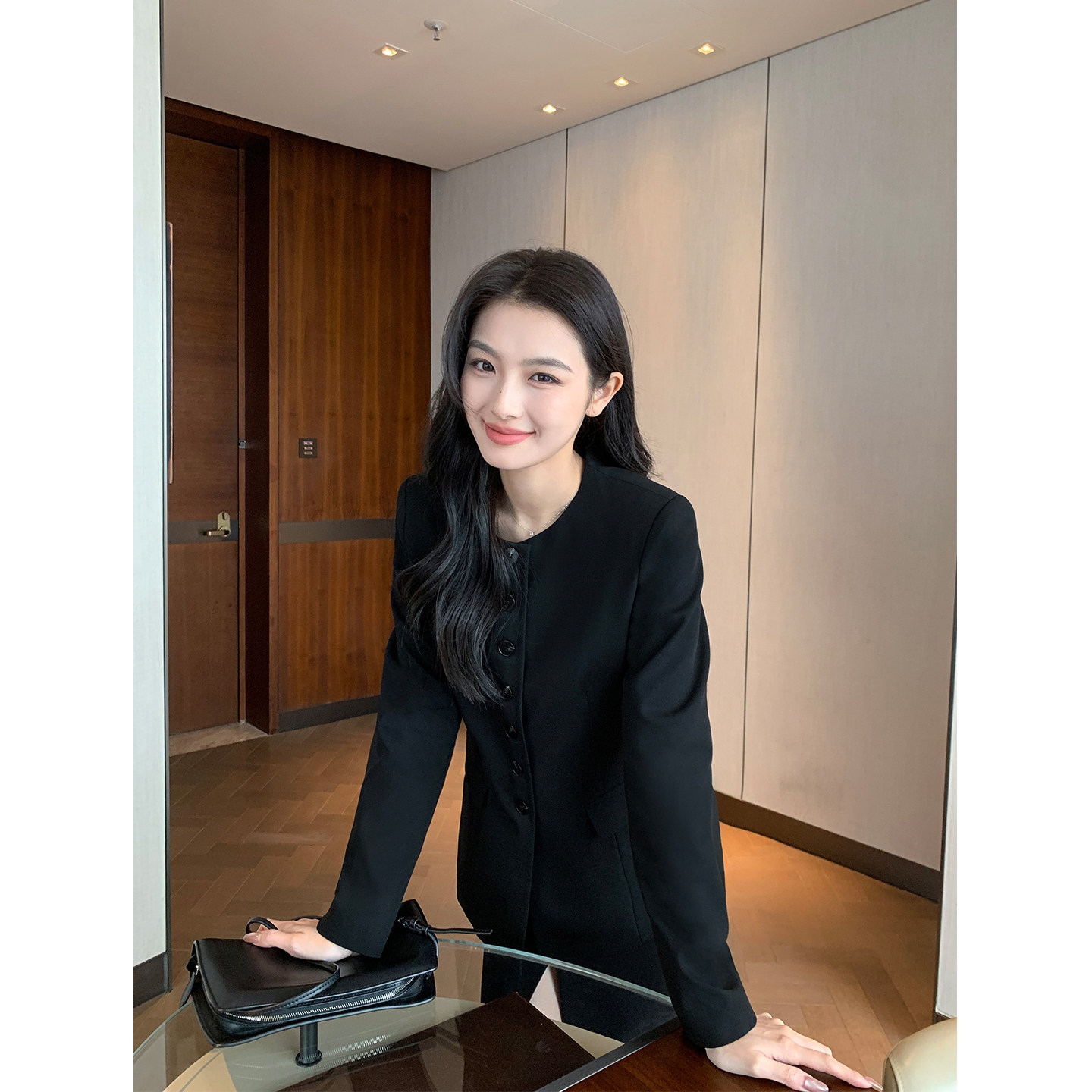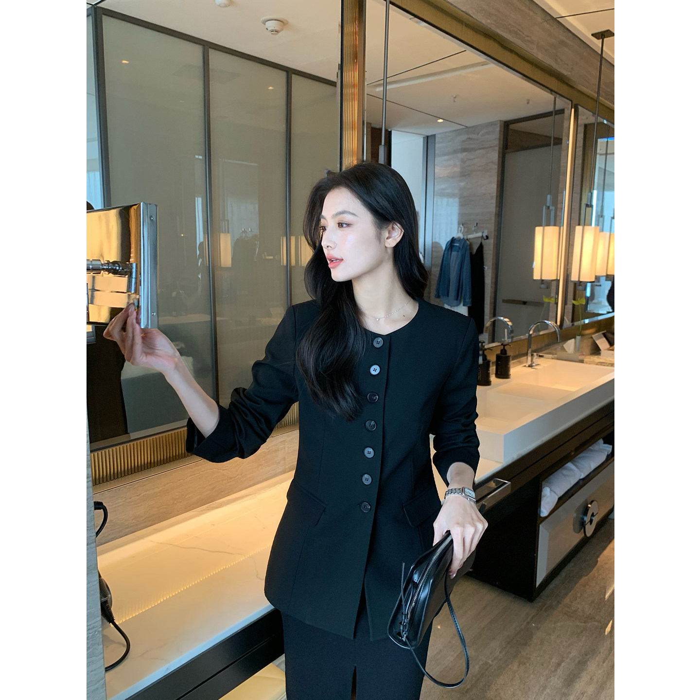 黑色圆领西装 自成焦点 外套女高级感职场通勤宽松西服 Lin Maven