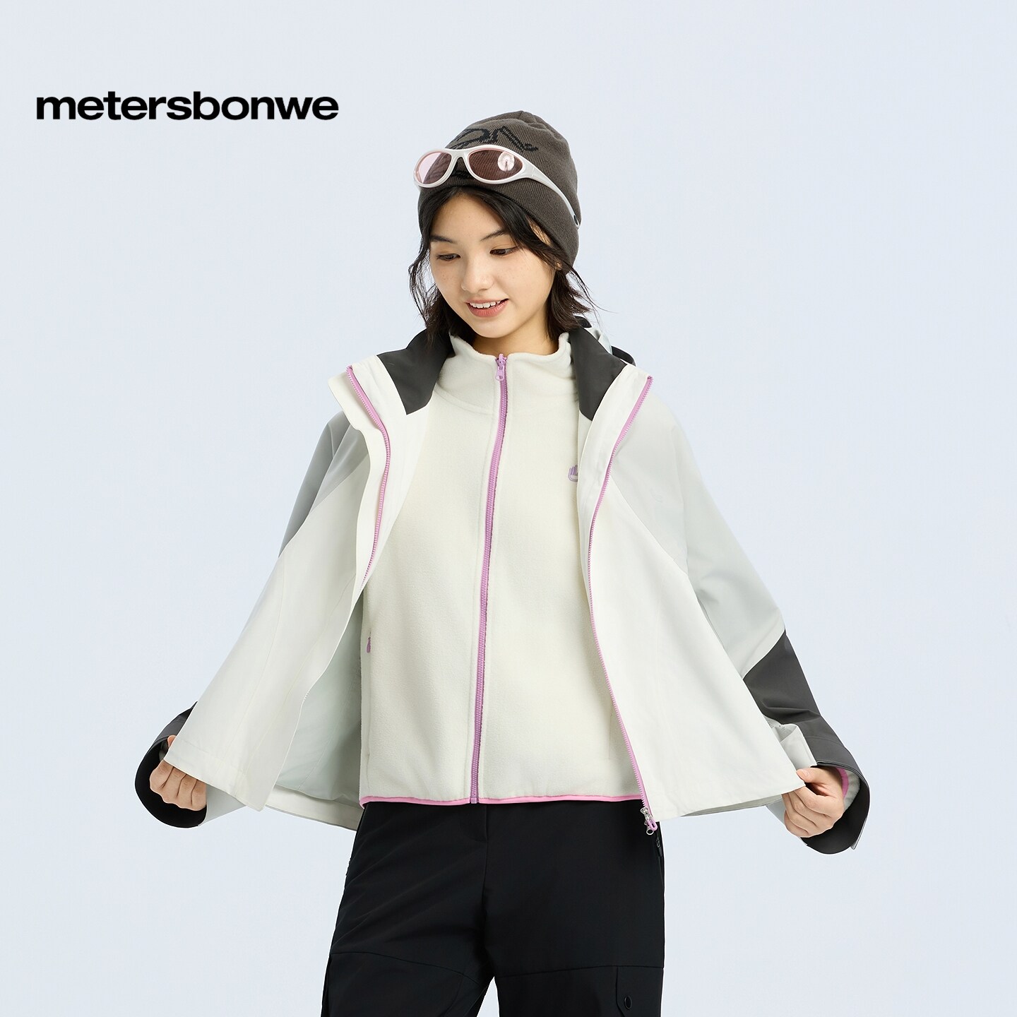 美特斯邦威夹克女春新款 机能户外三合一摇粒绒内胆冲锋衣女