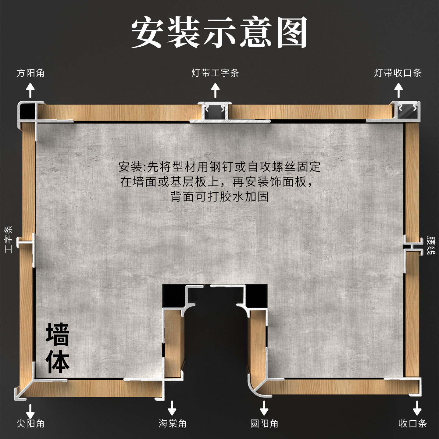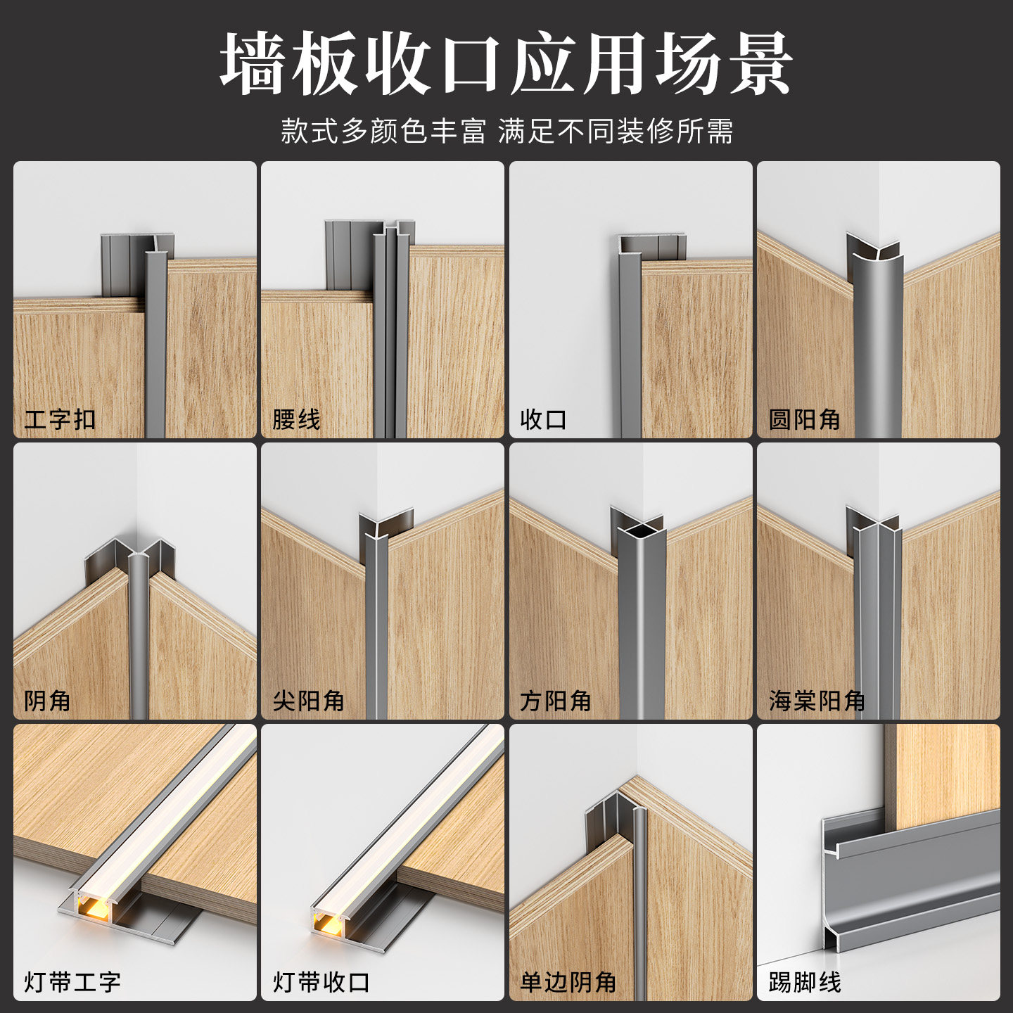 9厘3护墙板收口条工字型墙板阳角条灯带 木饰面铝合金收边条4