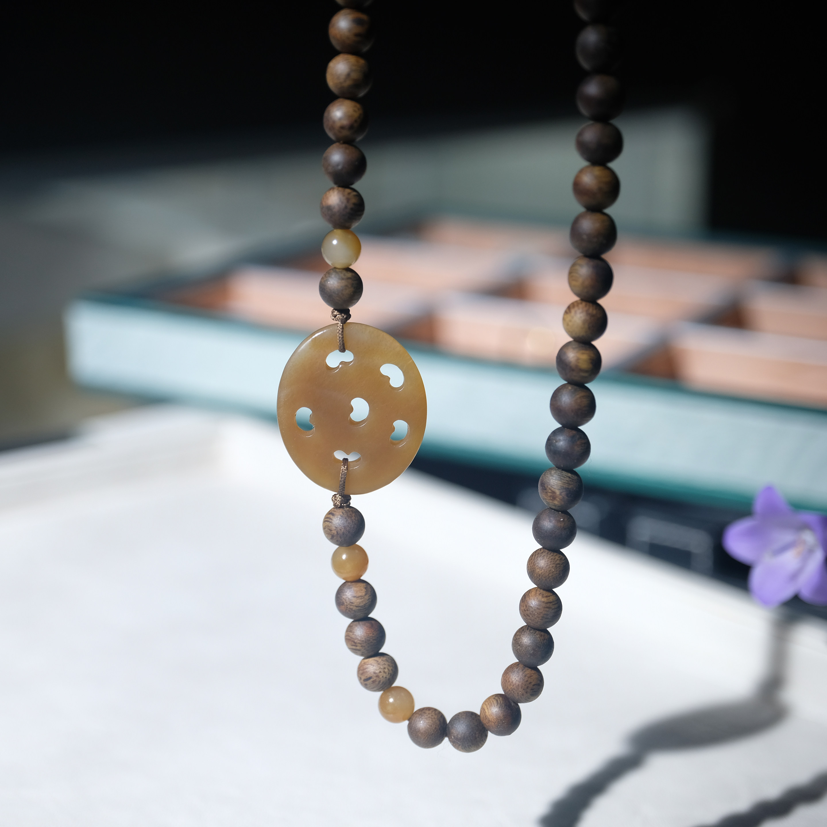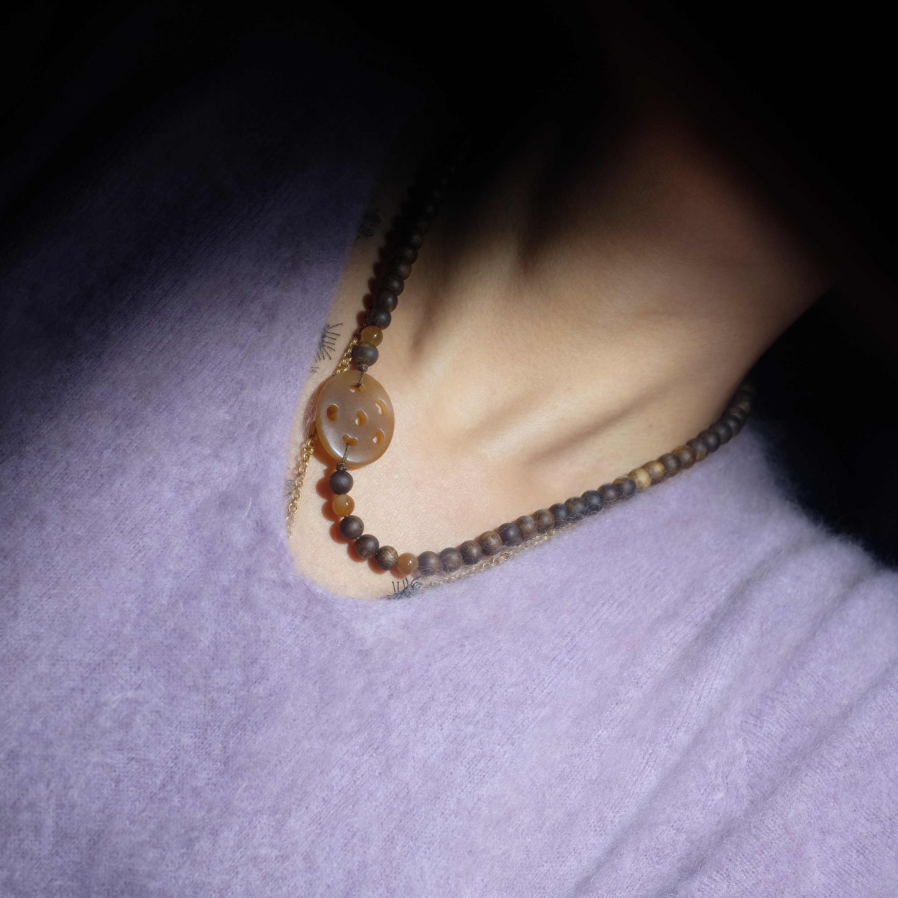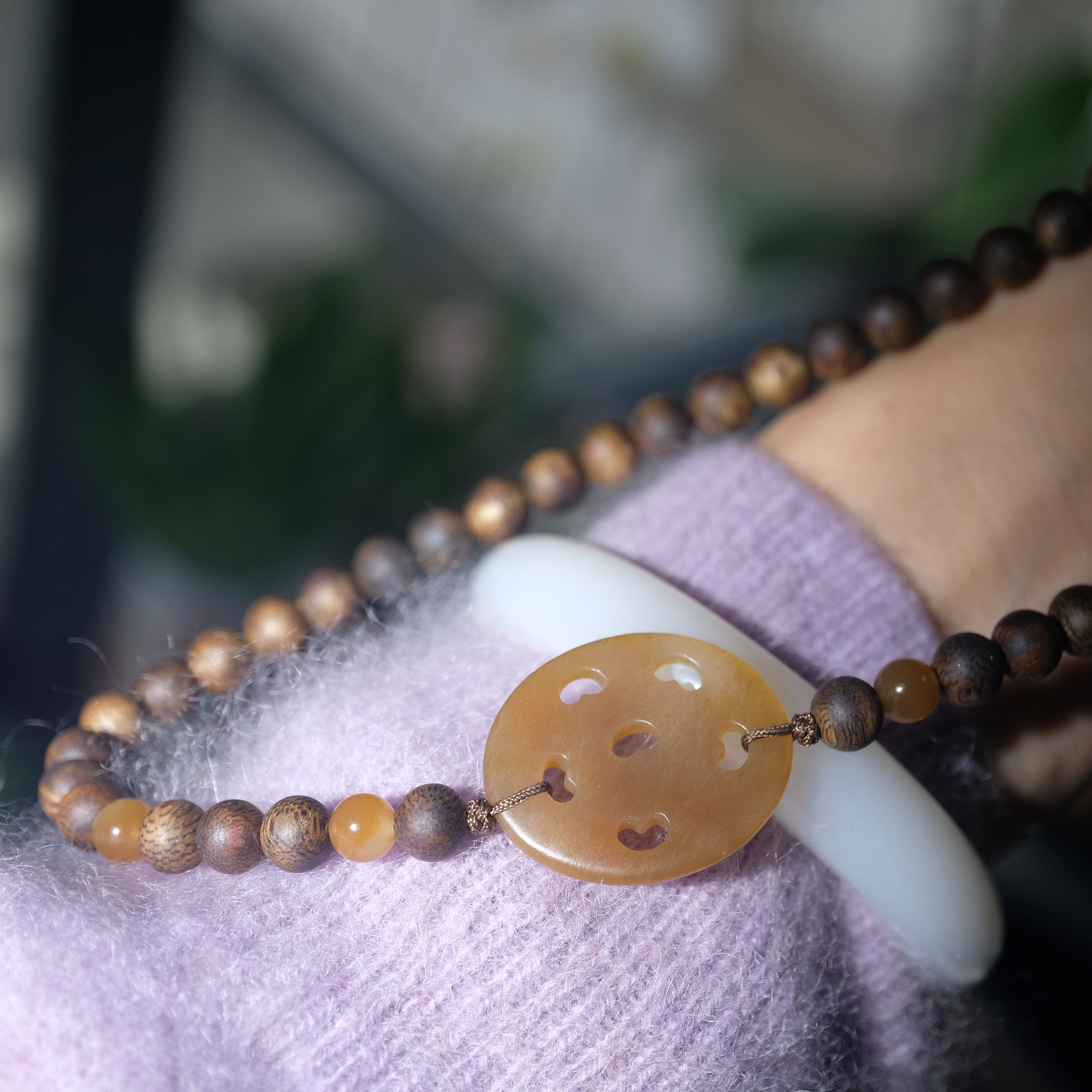 住朴 奇楠沉香搭配新疆且末糖藕片项链