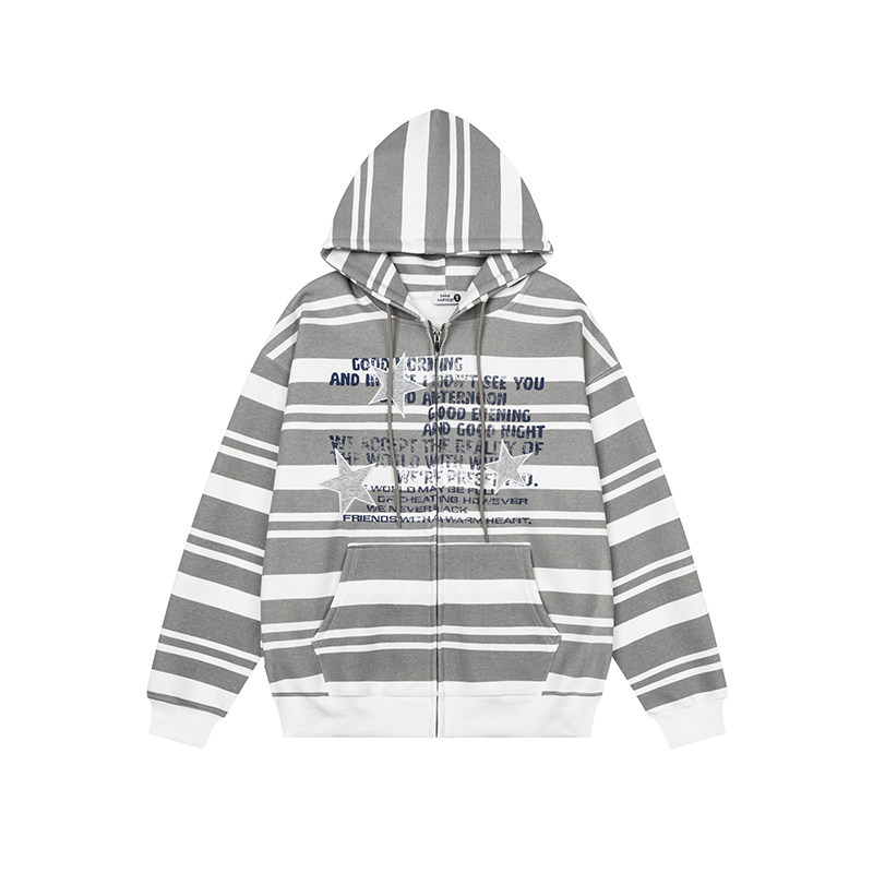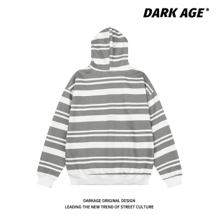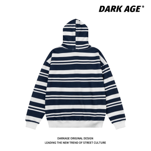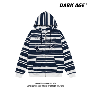 DARKAGE原创美式 卫衣男女宽松情侣拉链外套 复古条纹字母连帽开衫