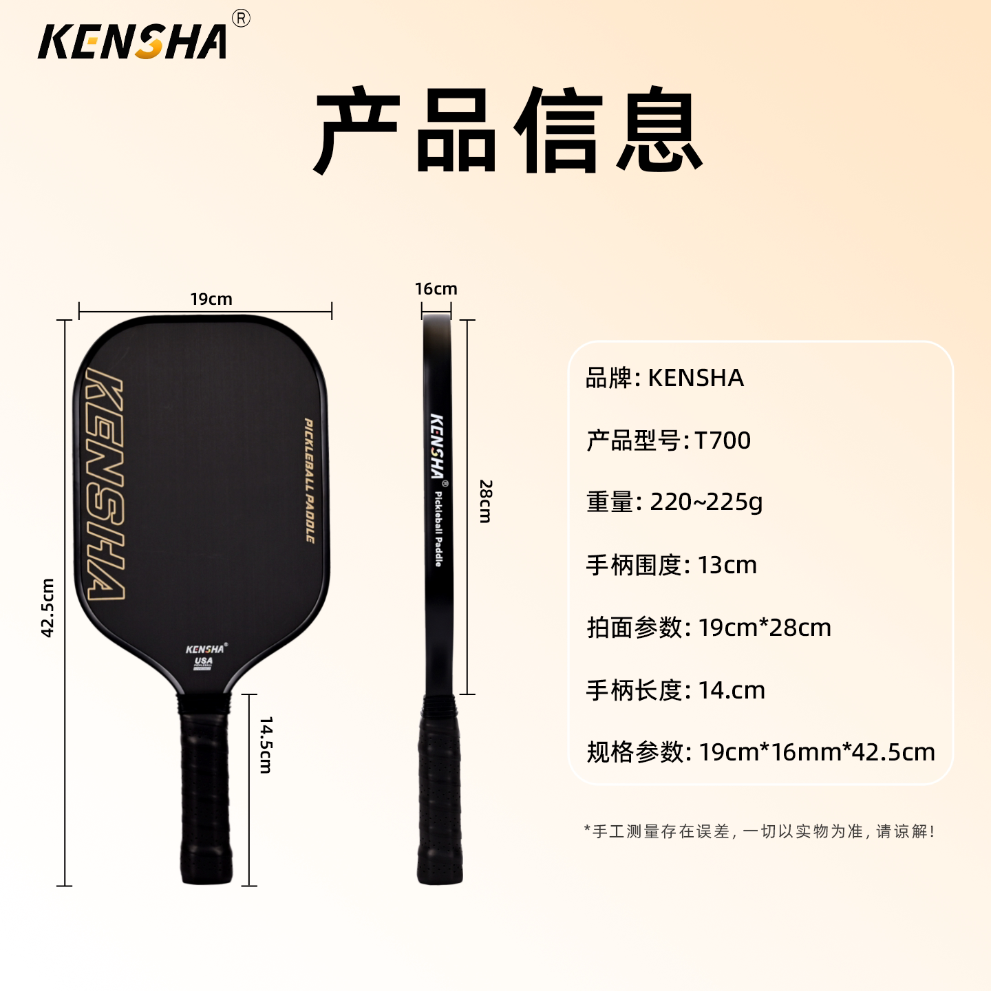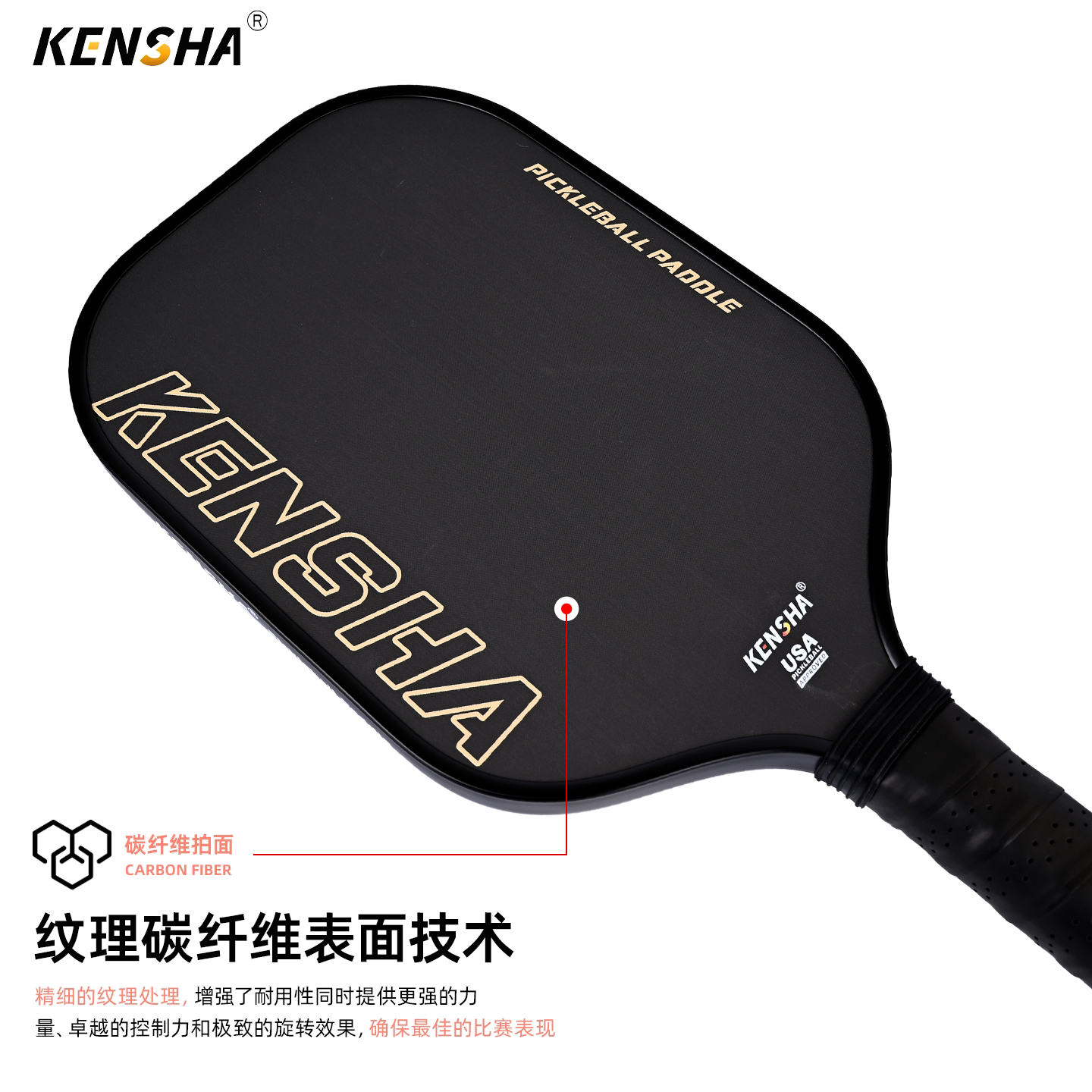 KENSHA肯鲨 匹克球板拍碳纤维pickleball专业训练T700碳纤赛级拍