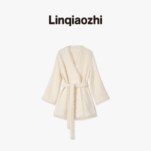 林乔芝2026年春季 香风浴袍休闲气质风衣女 羊毛大衣长款