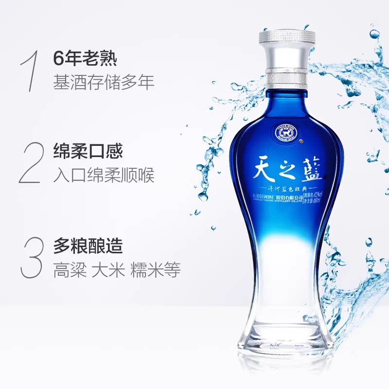 常规版 绵柔浓香型白酒自营 2瓶双支装 洋河天之蓝52度480ml