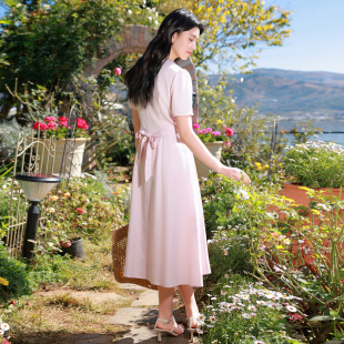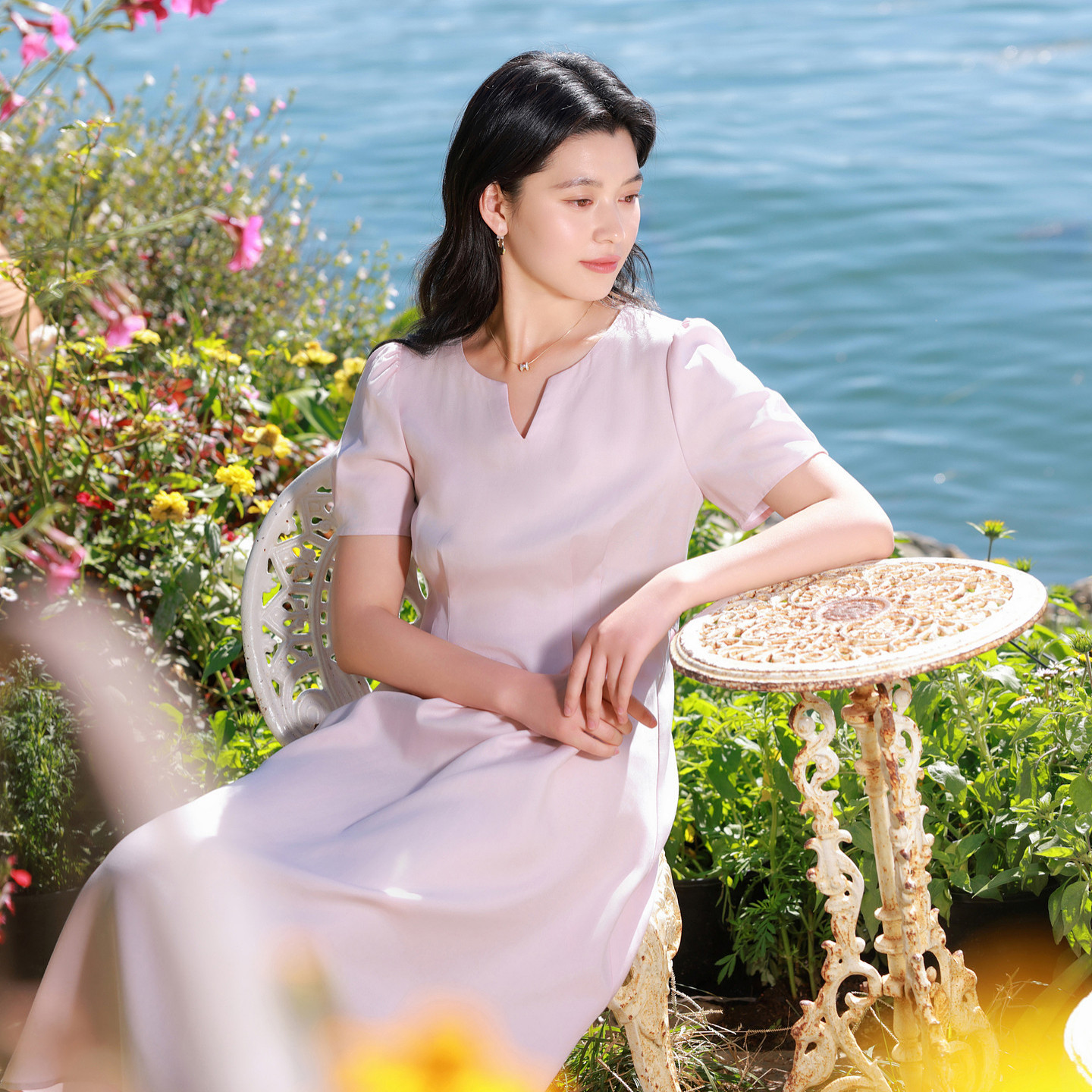 100莱赛尔 新款 若潮大码 2026春季 极简浅粉连衣裙胖MM 女装