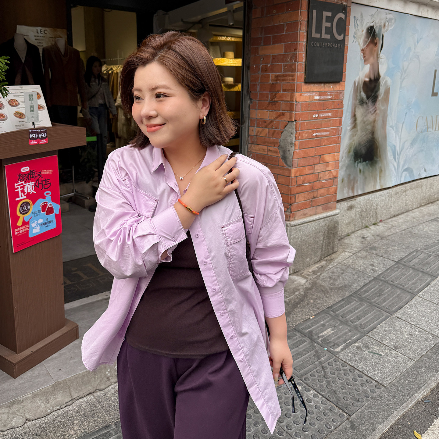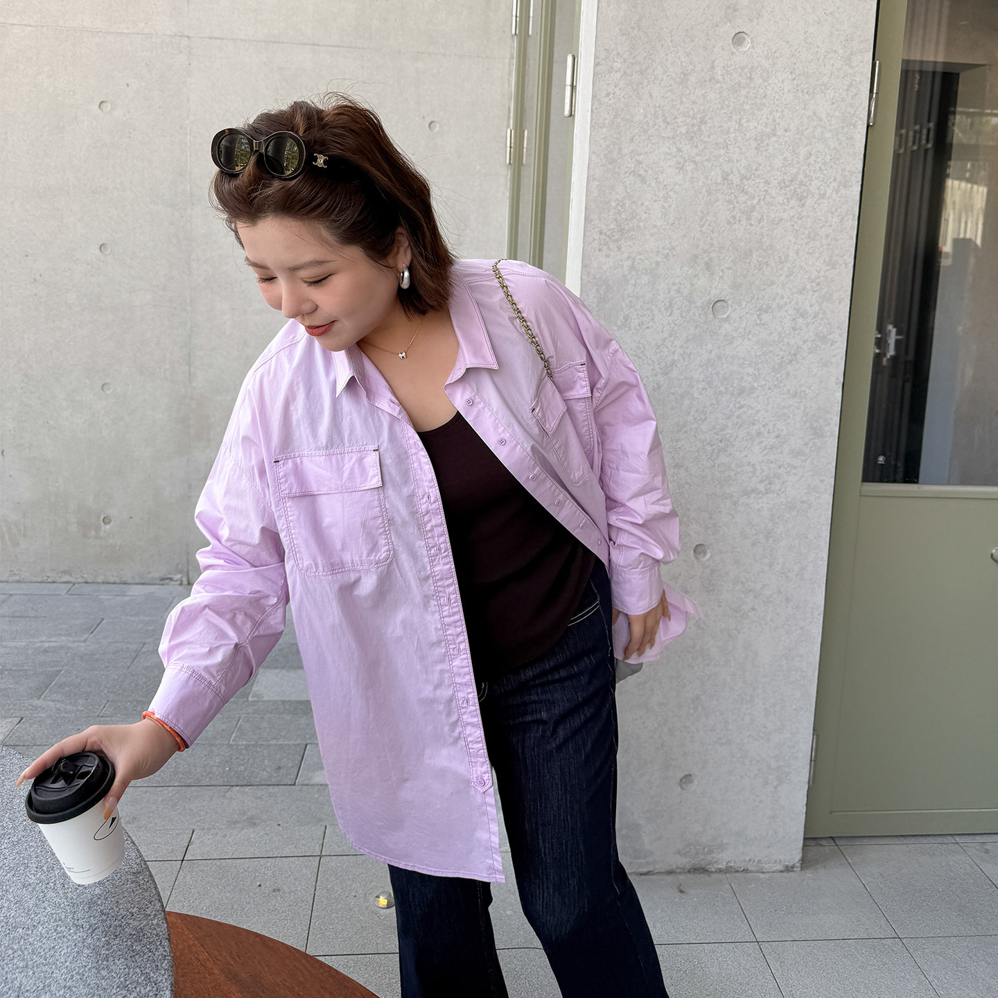 春季 女装 200斤纯棉舒适休闲粉衬衣 木子理想大码 胖mm慵懒宽松衬衫