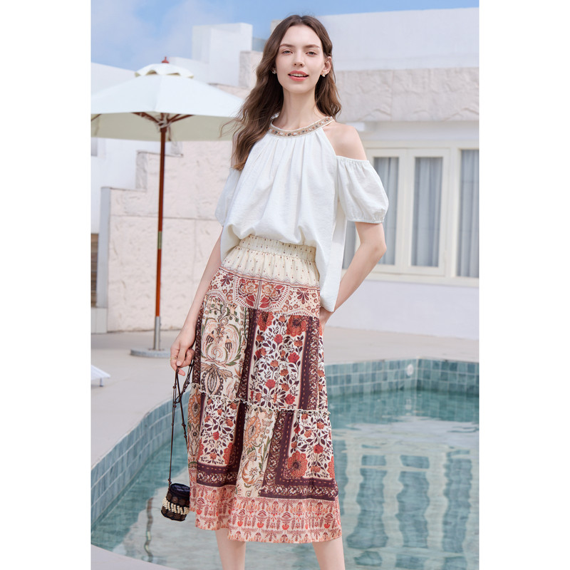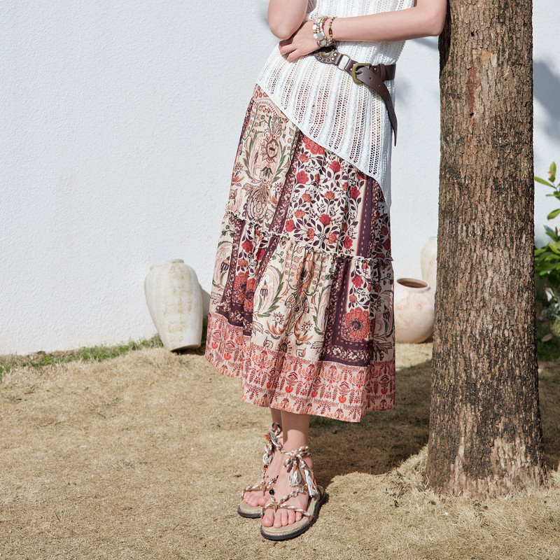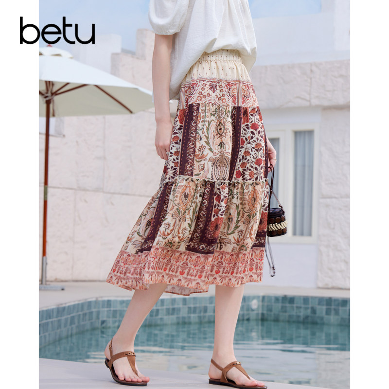 betu百图波西米亚风松紧腰半身裙女2026年夏季 印花裙A字裙 新款