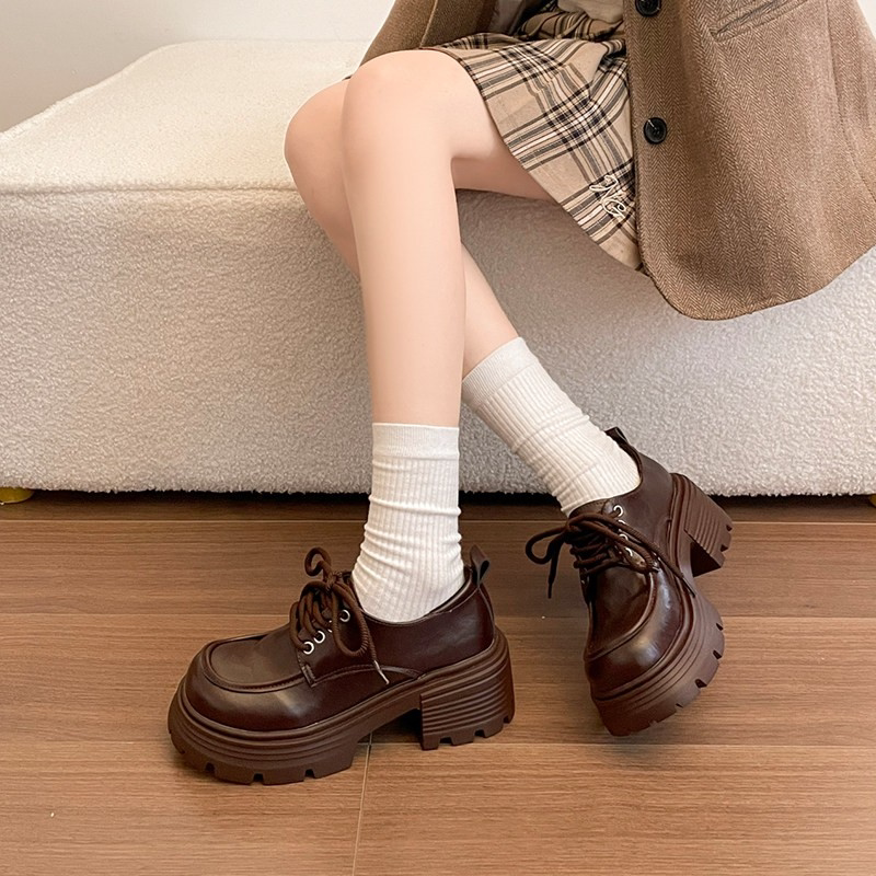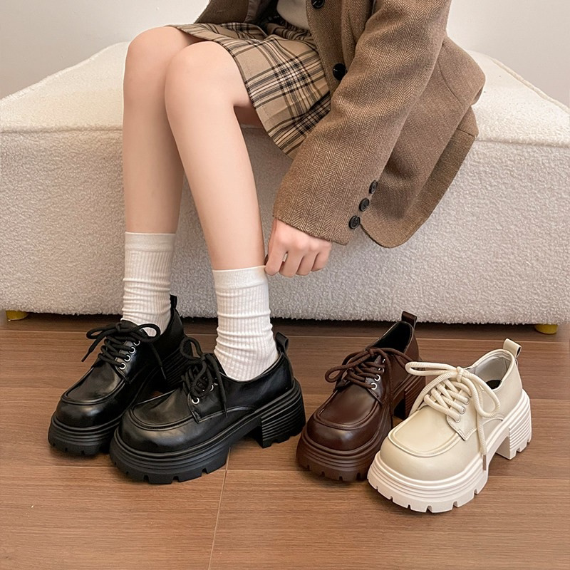 复古系带乐福鞋 英伦风黑色厚底小皮鞋 增高休闲单鞋 新款 女2026春季