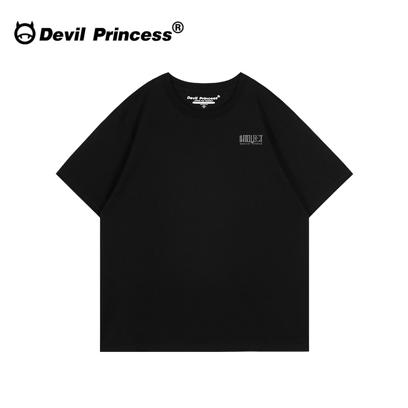 简约风设计感字母印花黑色正肩t恤女短袖 宽松显瘦纯棉上衣潮 美式