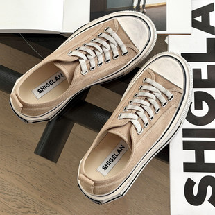 潮流低帮鞋 诗歌兰2026新款 系带韩版 女厚底松糕休闲板鞋 低帮帆布鞋