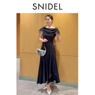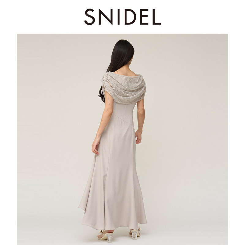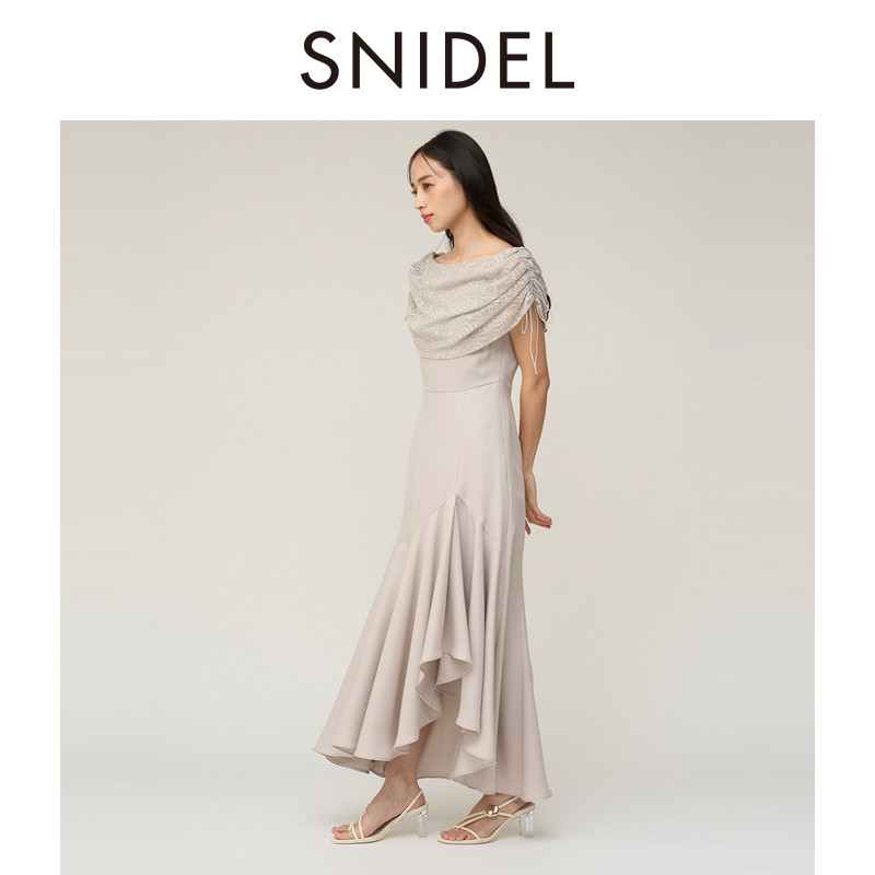 SNIDEL2026春夏新品 优雅蕾丝披肩领不规则鱼尾连衣裙SWFO261150
