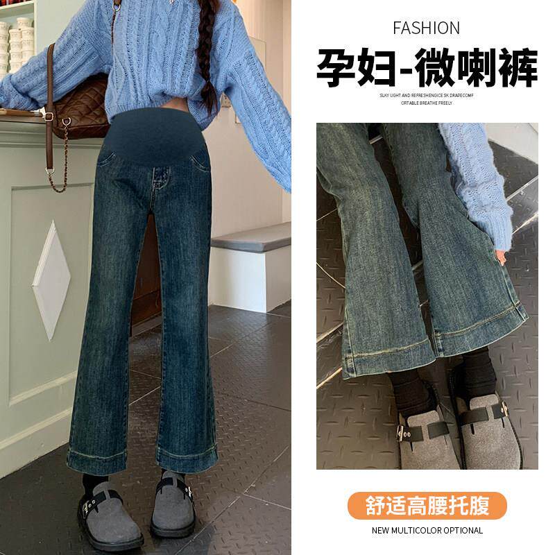 子春秋外穿宽松小个子怀孕期舒适阔腿裤 孕妇高腰托腹直筒牛仔裤 裤